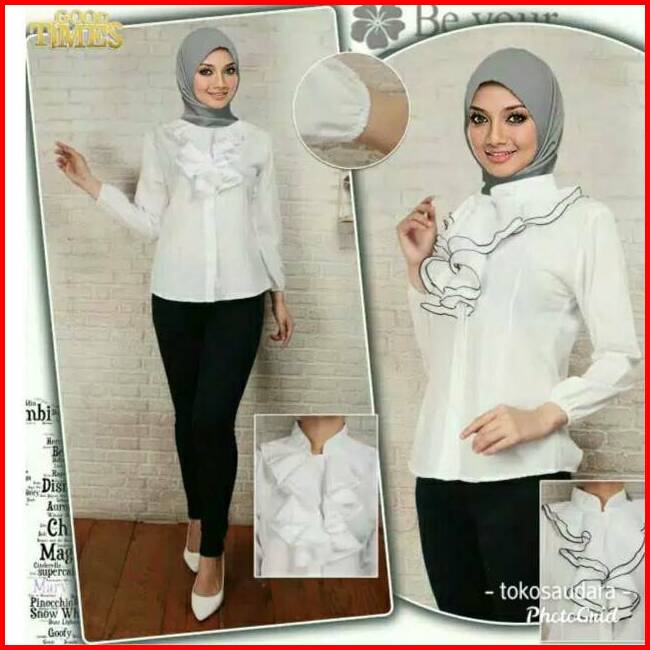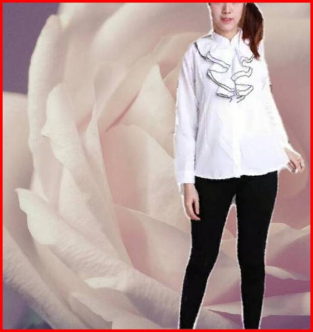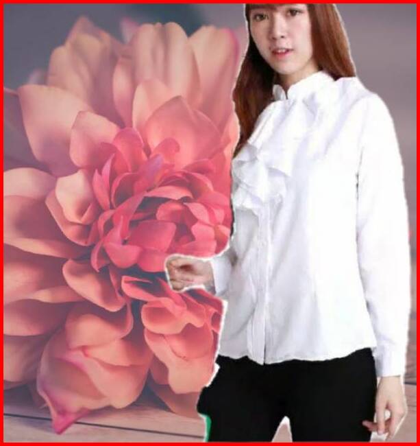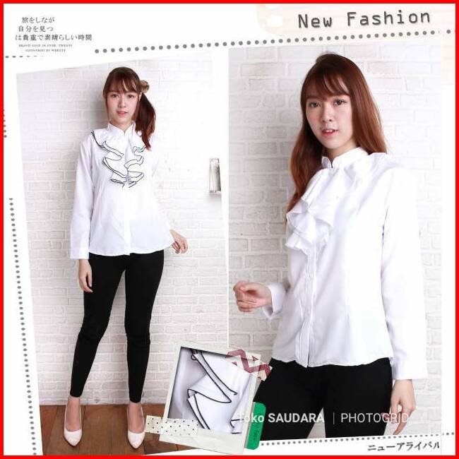 Kemeja Putih Rumbai Dada Lengan Panjang