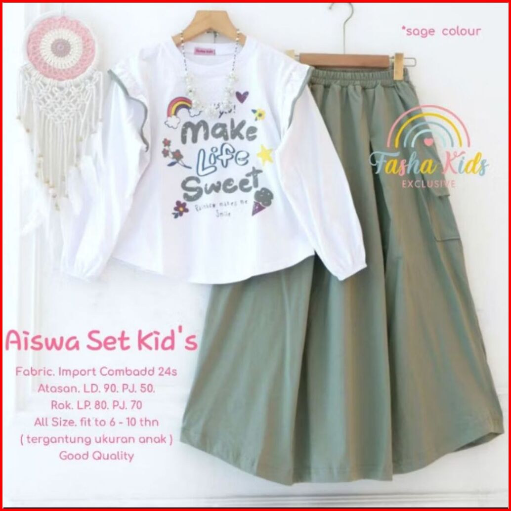 Setelan Rok Anak Perempuan Terbaru 2025-aiswa Set Kid S Crinckle Airflow-setelan Kekinian.terlaris