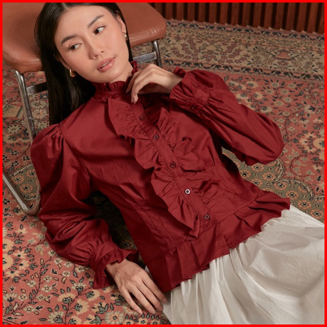 Posh Lace Meadow Top - Kemeja Wanita Ruffle Lengan Panjang Atasan Blouse Vintage