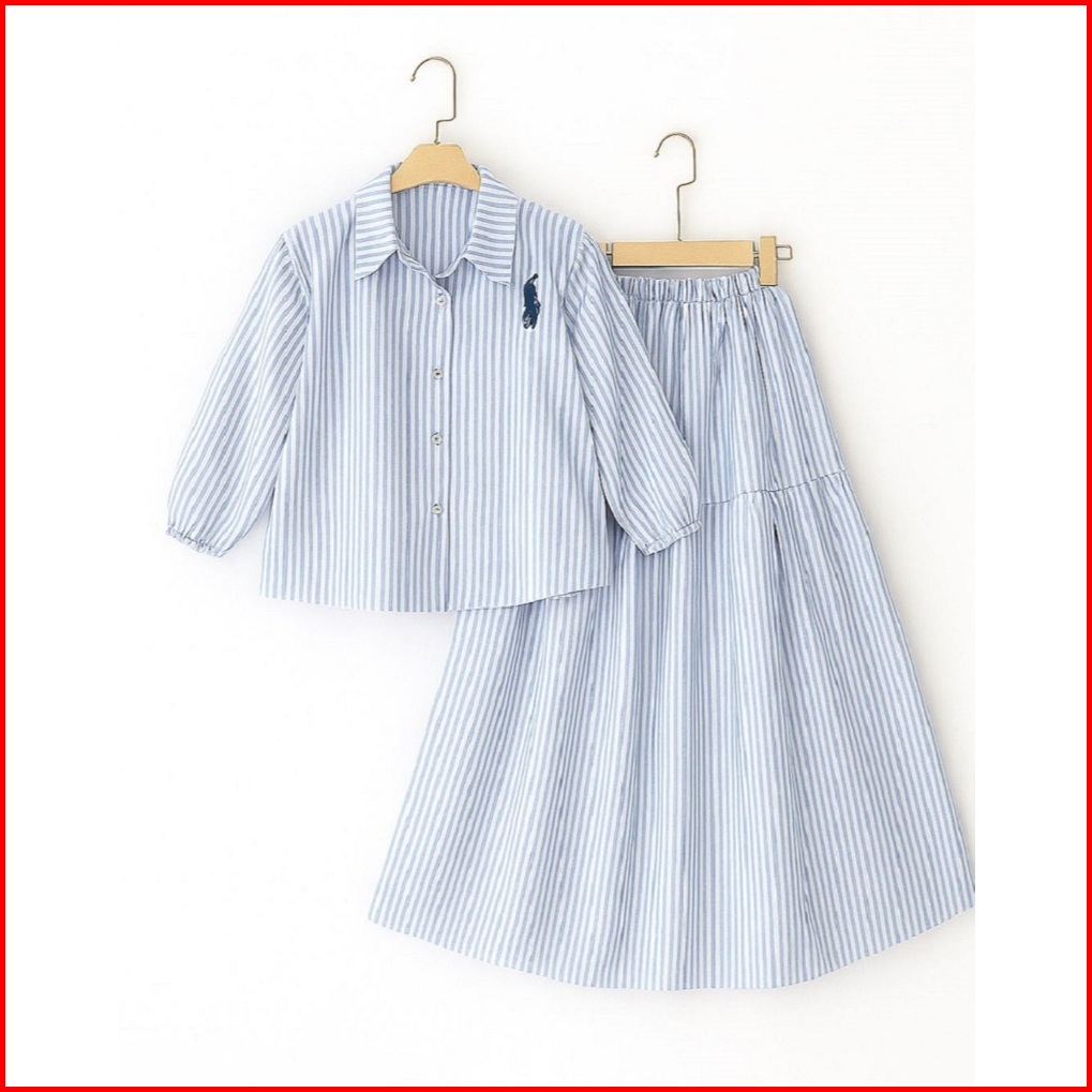 Setelan Rok Anak Prempuan 3-12tahun Terbaru 2025-hanna Set Kid S Katun Salur Kekinian.