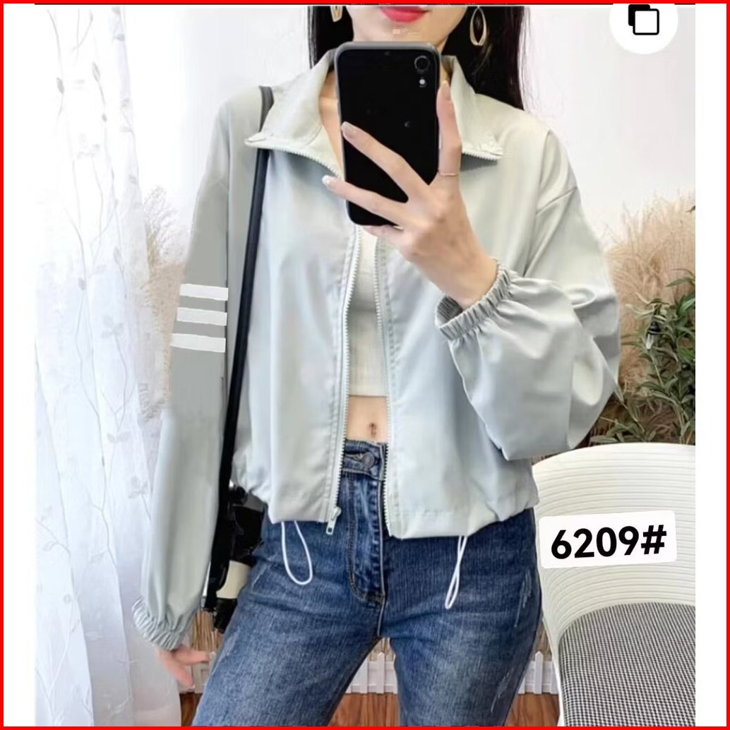 Jaket Wanita Korean Style Harian Atau Olahraga - Jaket Parasut Wanita Casual List Lengan