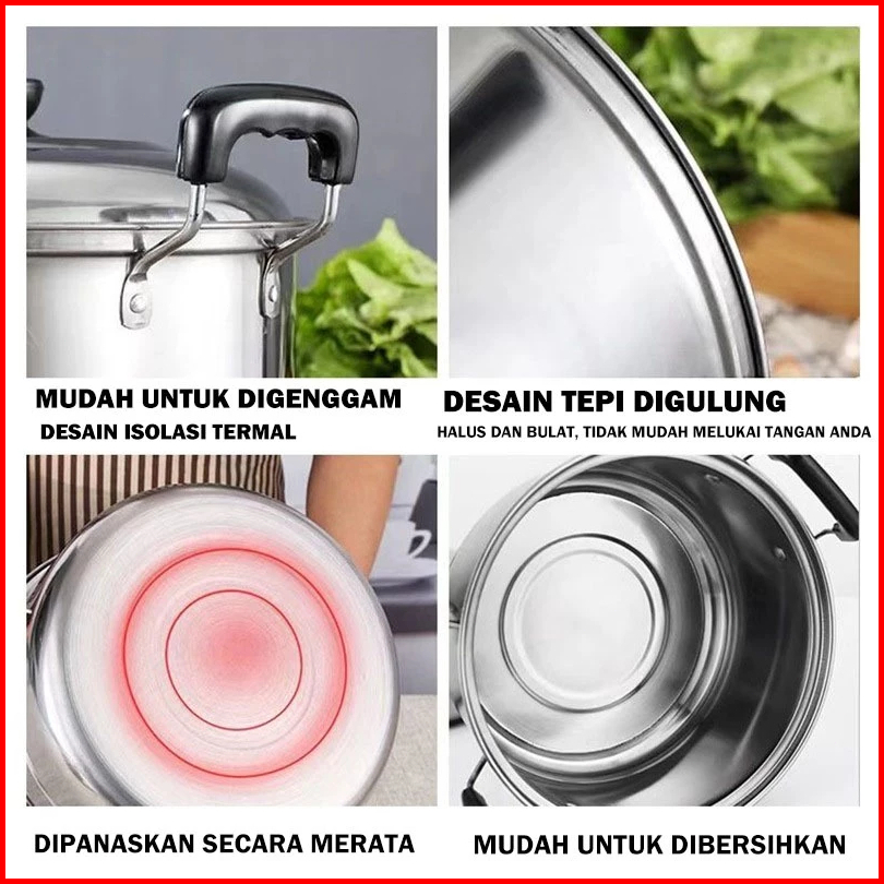 10in1 Panci Steamer Set Stainless Isi 5 Pcs Kukusan Panci Bahan Tebal