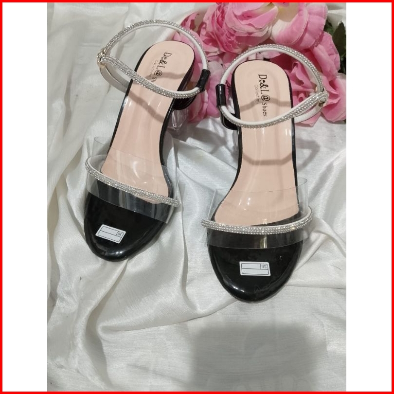 Sendal Heels Dns 23 Wanita Permata Hk Kaca 7cm