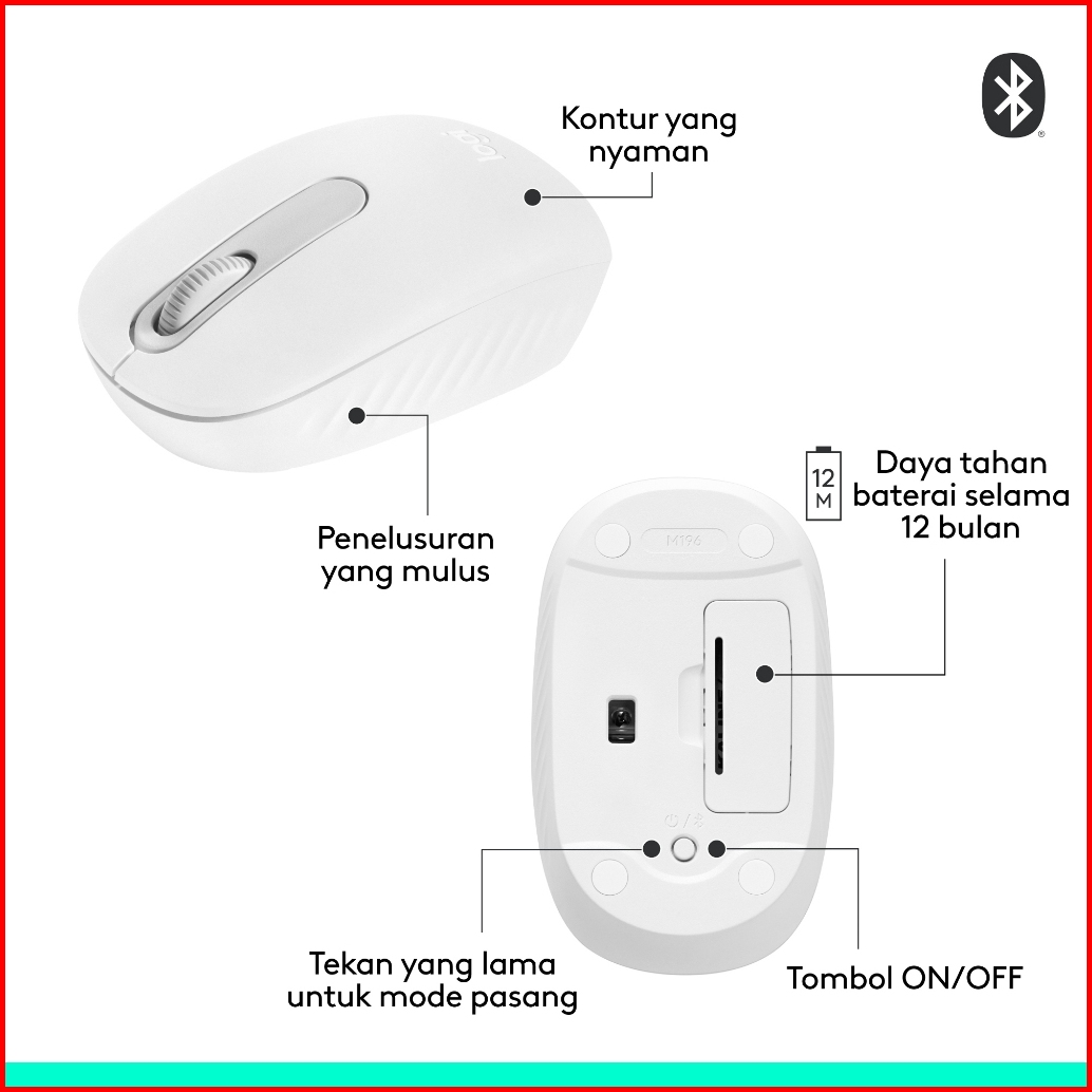 Logitech M196 Mouse Wireless Bluetooth Mouse Ringkas Dan Portabel Untuk Laptop Tablet Dan Lainnya Baterai 12 Bulan Penel