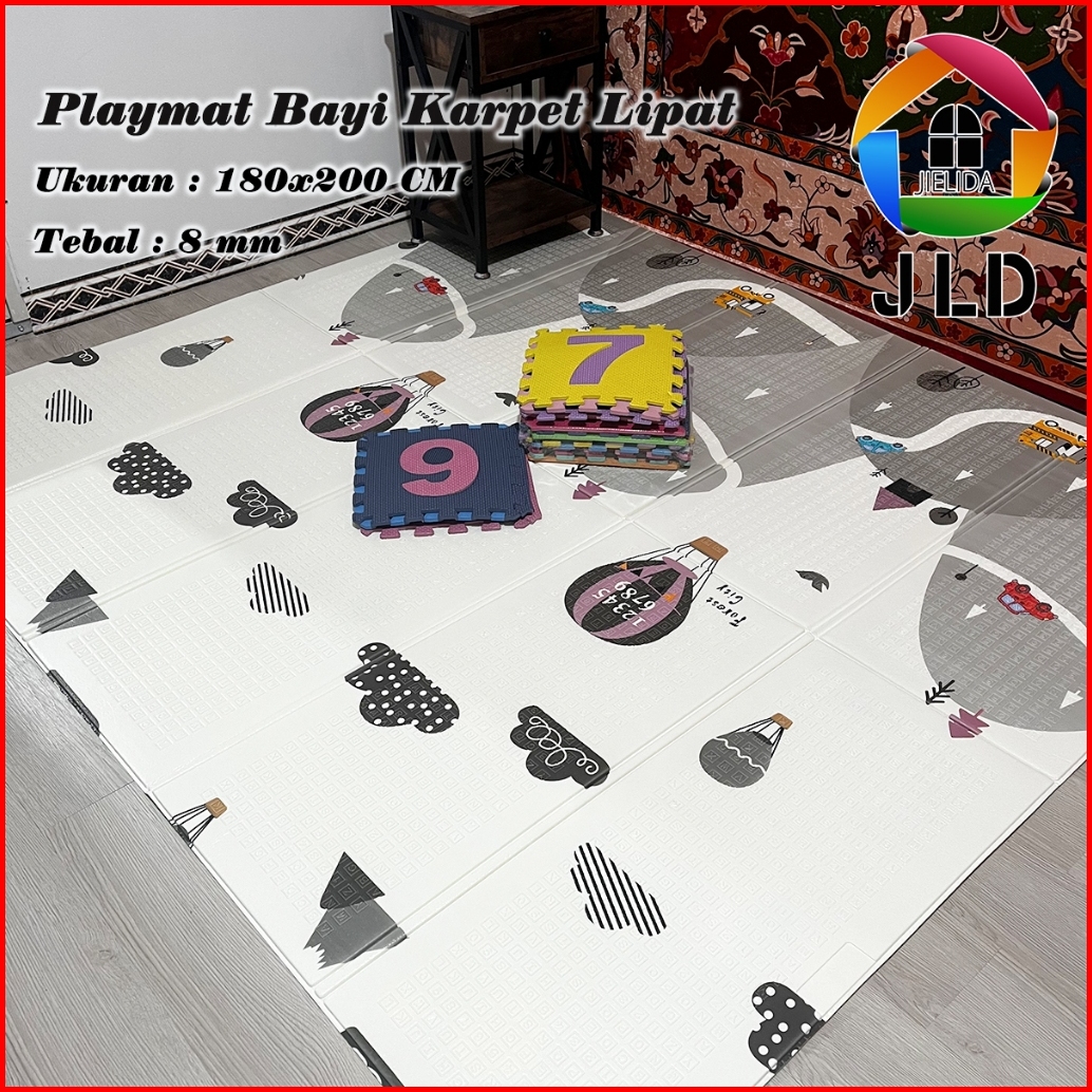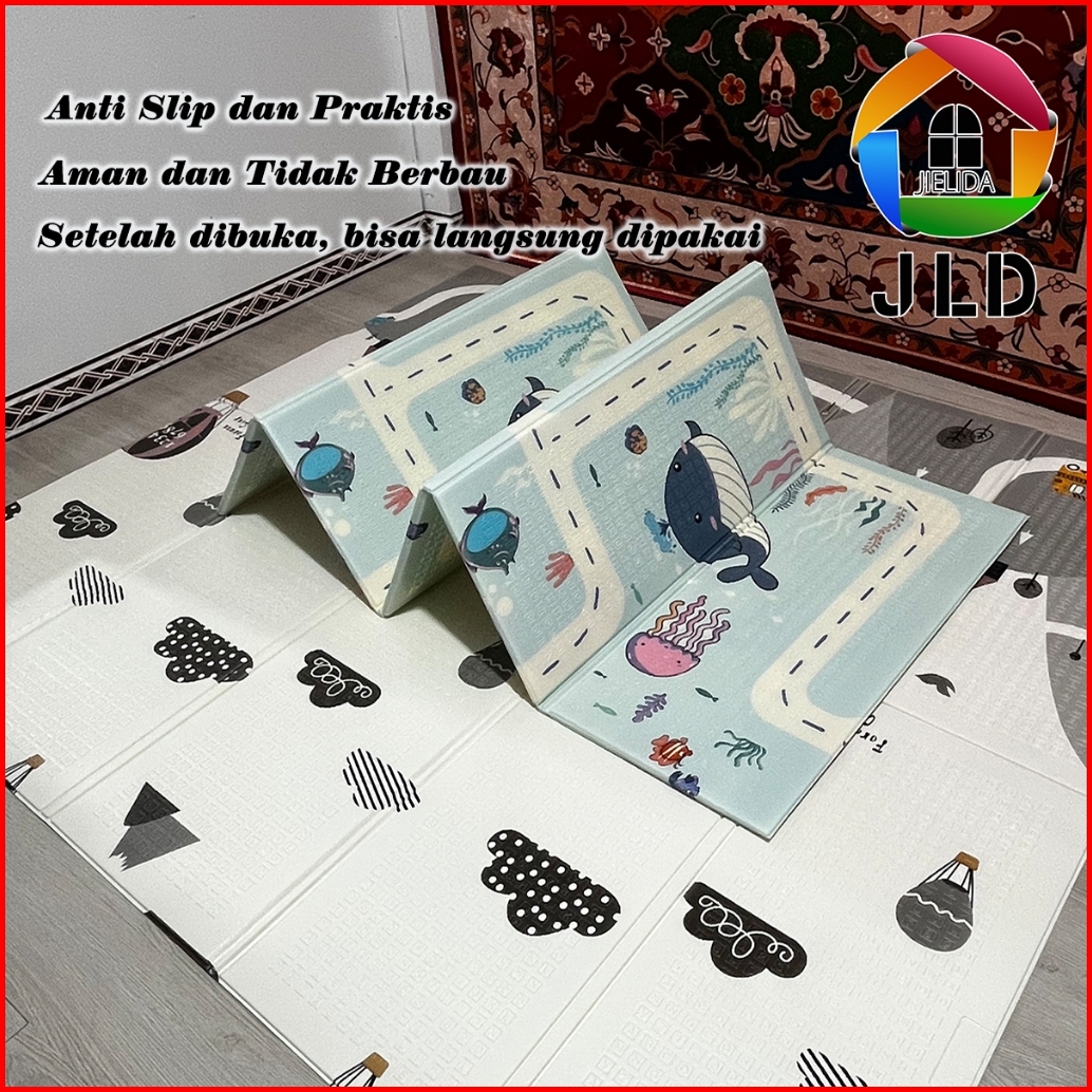Jielida Matras Bayi 180x200 Cm Playmat Bayi Karpet Lipat Anak Bayi Tikar Lipat Foam Dua Sisi Gambar Free Tas Playmat