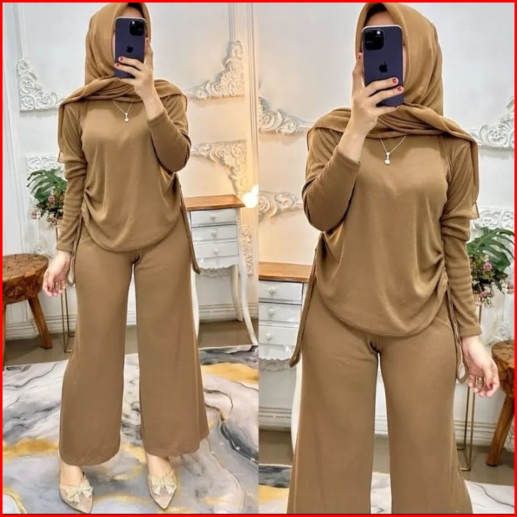 Oneset Nayla Serut Ribb Knit Setelan Serut Samping Kiri Kanan Baju Setelan Wanita Bahan Rib Knit Ribb Oneset Wanita Terb