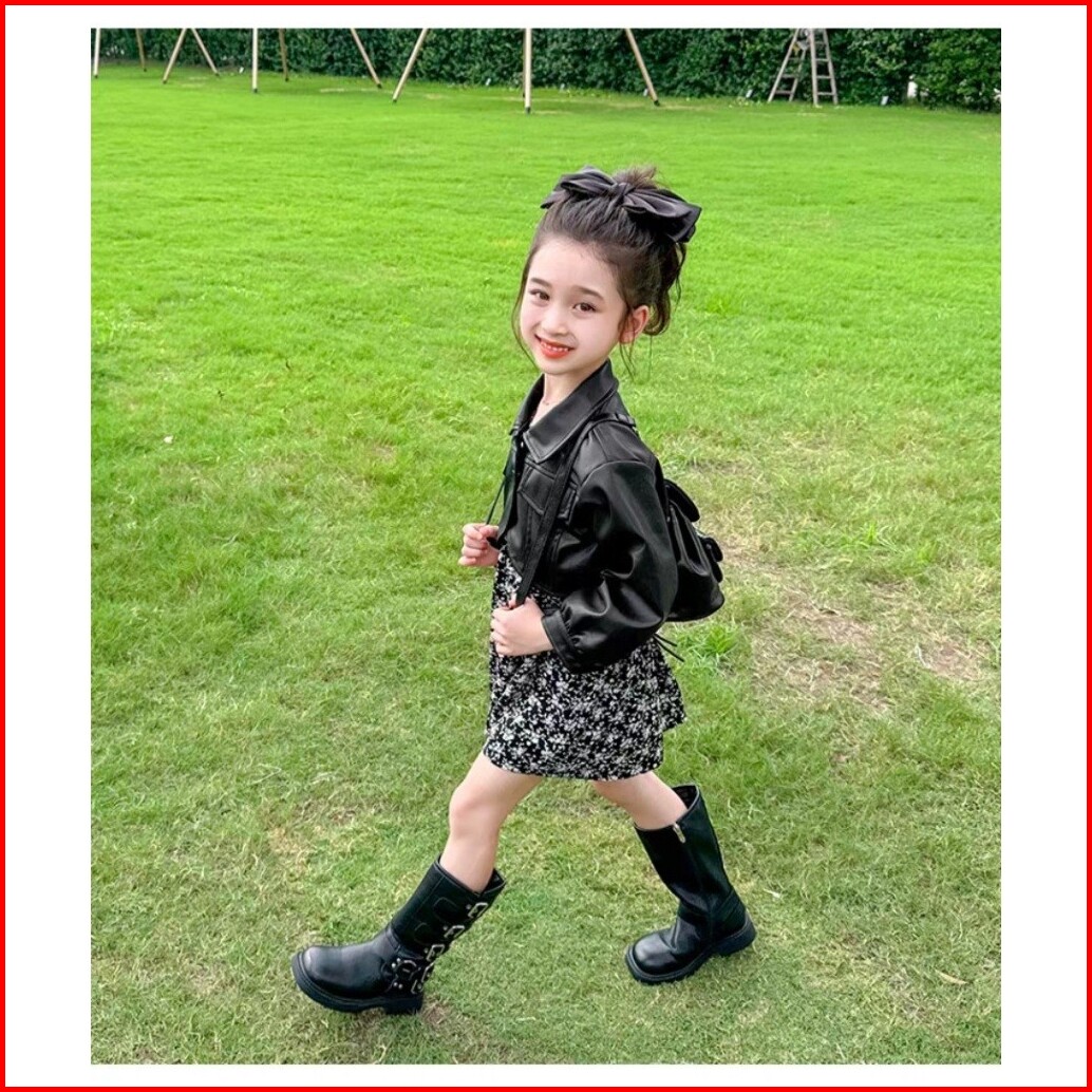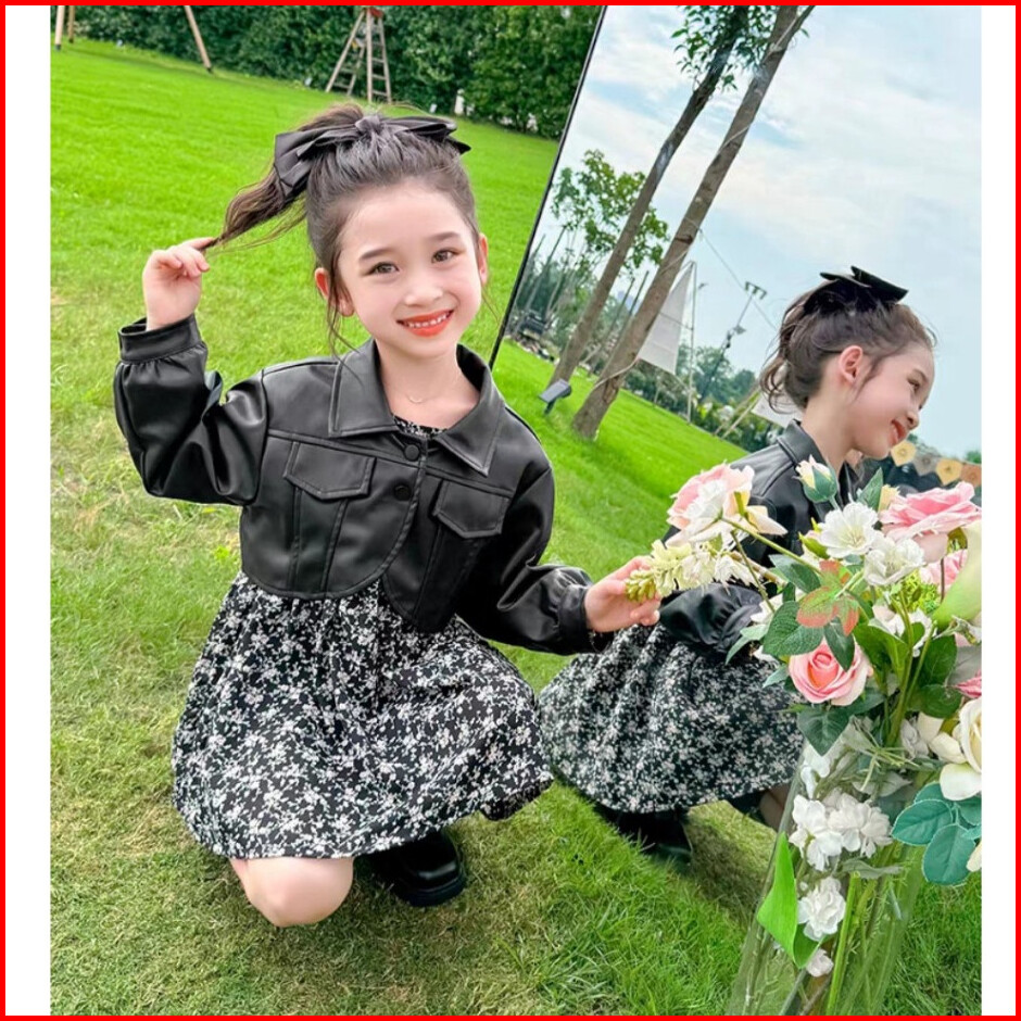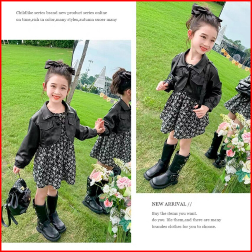 Chubbi 63 - Dress Gaun Set 2in1 Anak Perempuan Rok Bunga Dan Jaket Kulit Modis Trendi