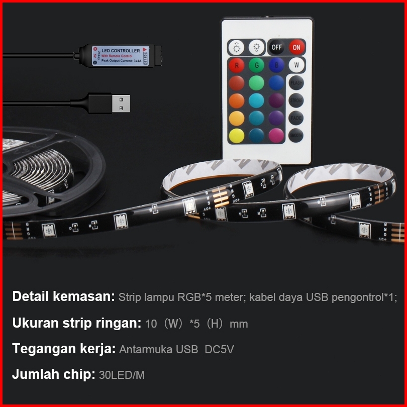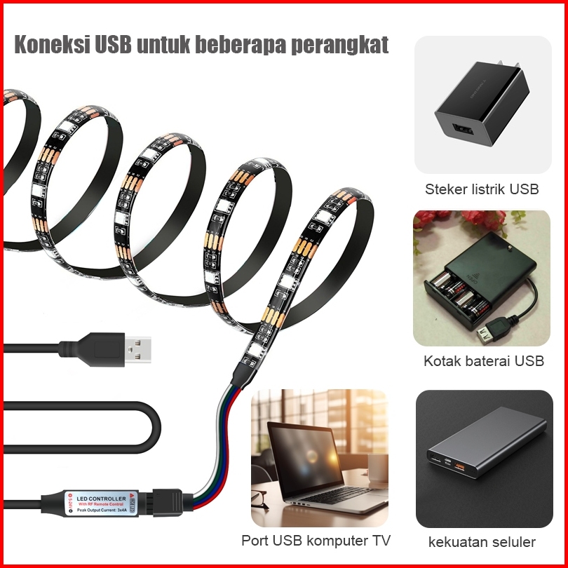 5050 5v Lampu Strip Led Usb Powerbank Rgb 1m 2m 3m 5m Plus Remote Cctv Lampu Rgb