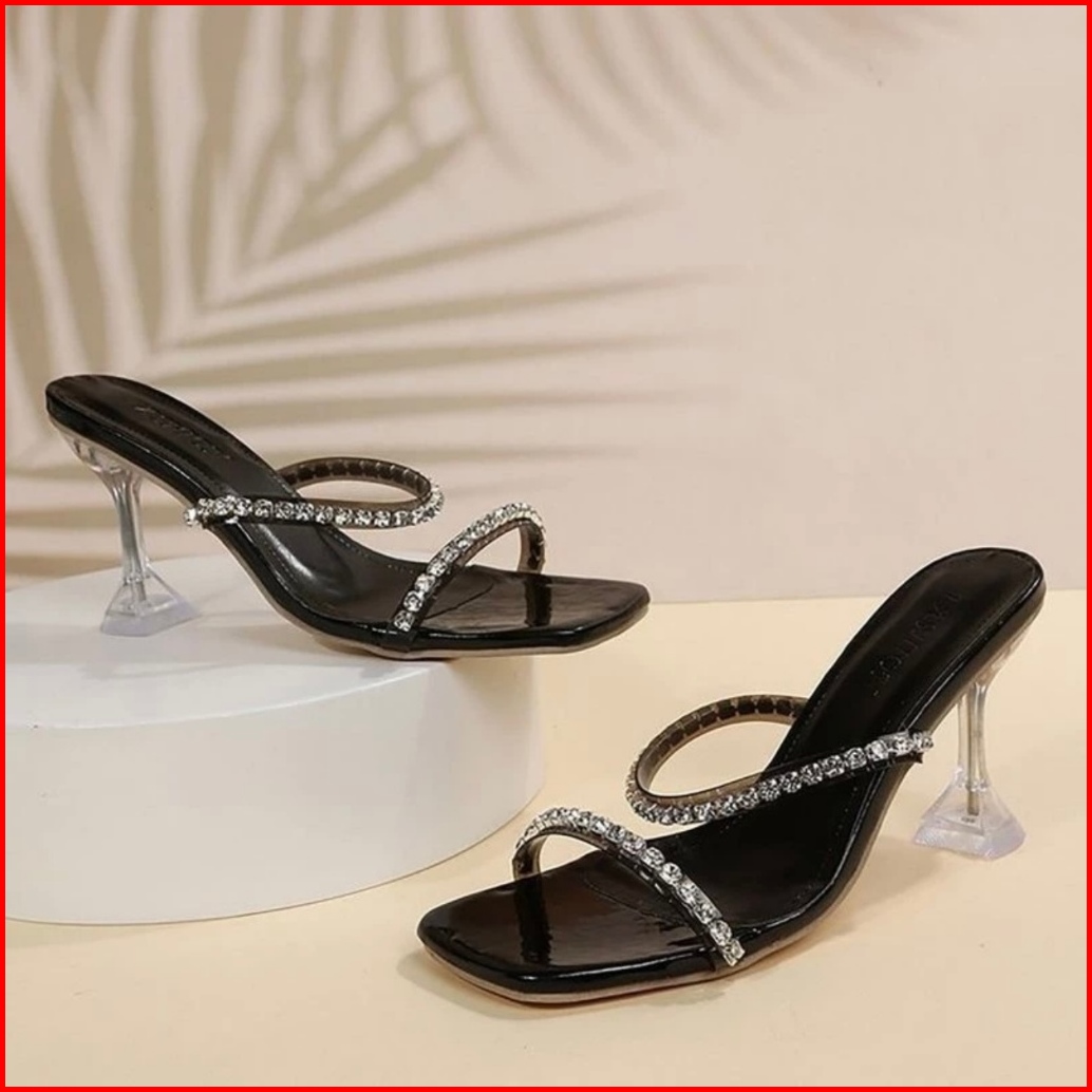 High Heels Wanita Cantik Sandal Pesta Kekinian Hak Kaca Runcing Diamond