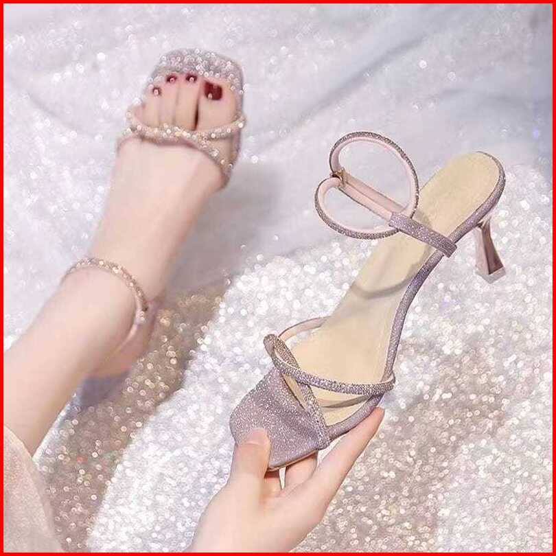 Sandal Heels Wanita Hak Lancip Gliter 7cm Girly Sandal Kondangan Sandal Pesta Anastasya
