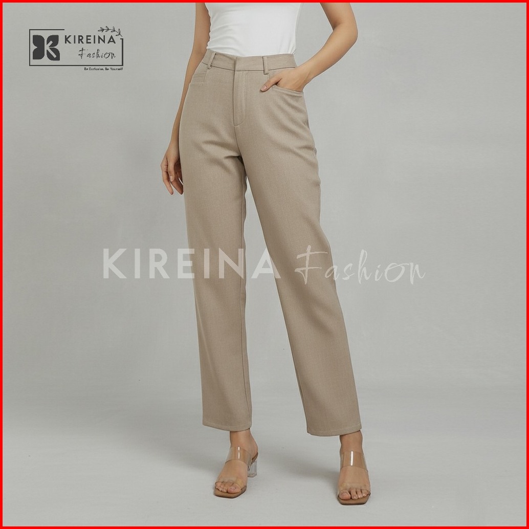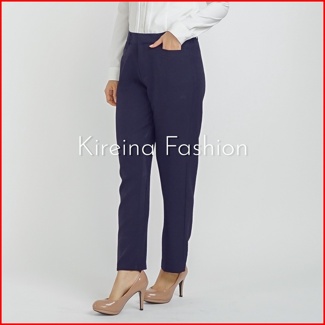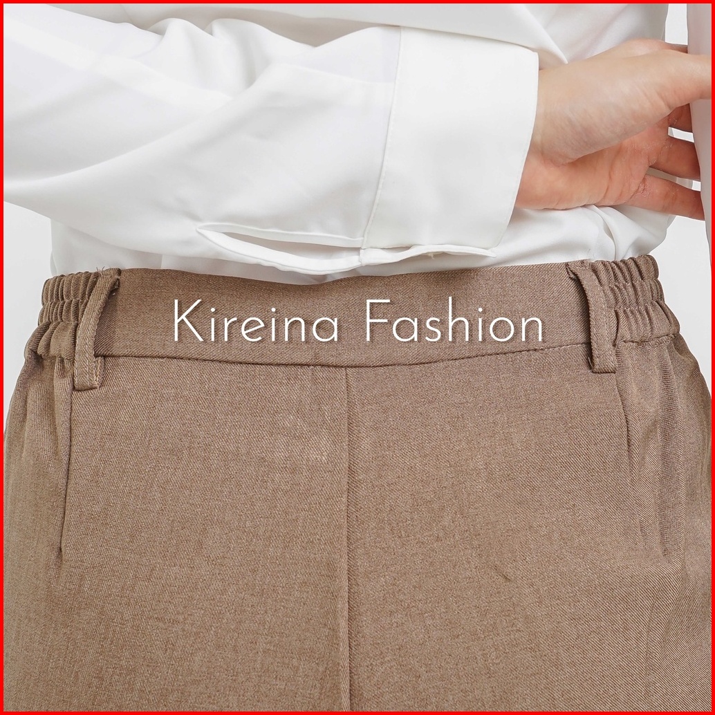 Kireina - Celana Kerja Wanita Kantor Formal Stretch Premium Pinggang Karet Resleting Kancing Kait