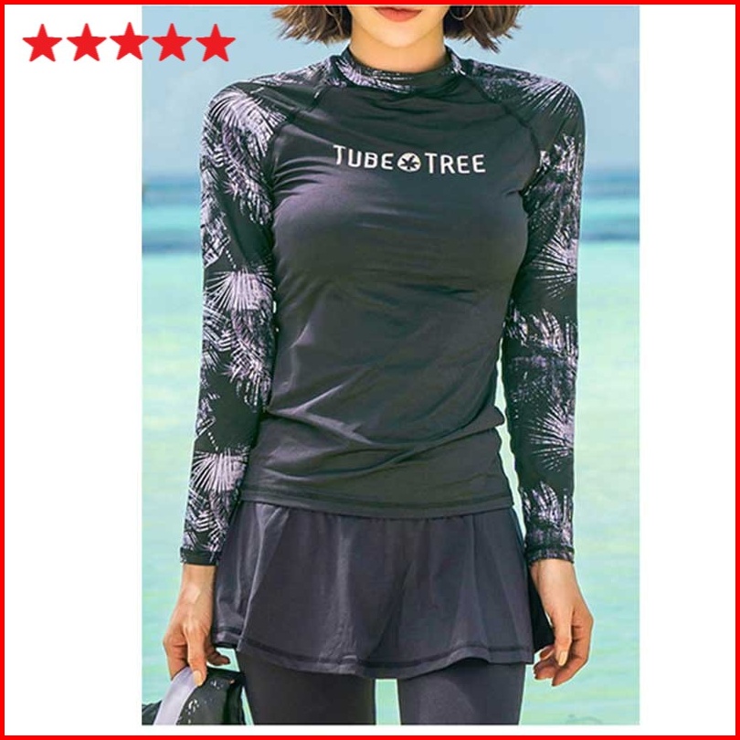 Ready4pcs Set Baju Renang Rashguard Wanita Lengan Panjang Rok Untuk Surfing Pantai Berpasir