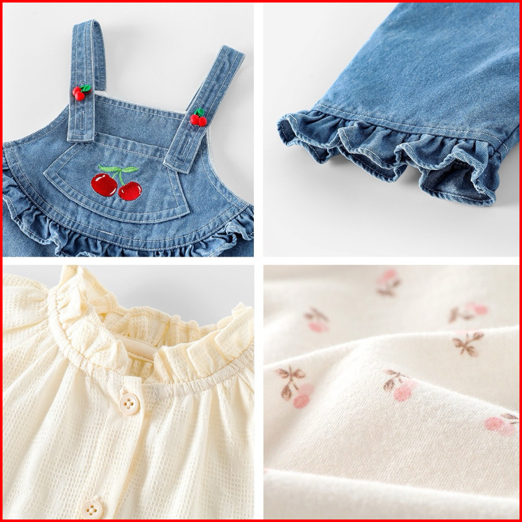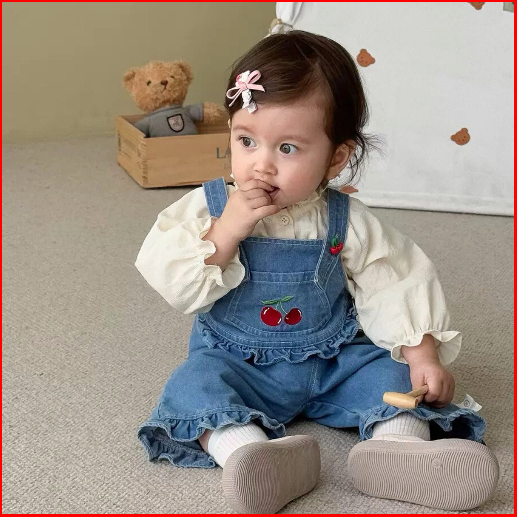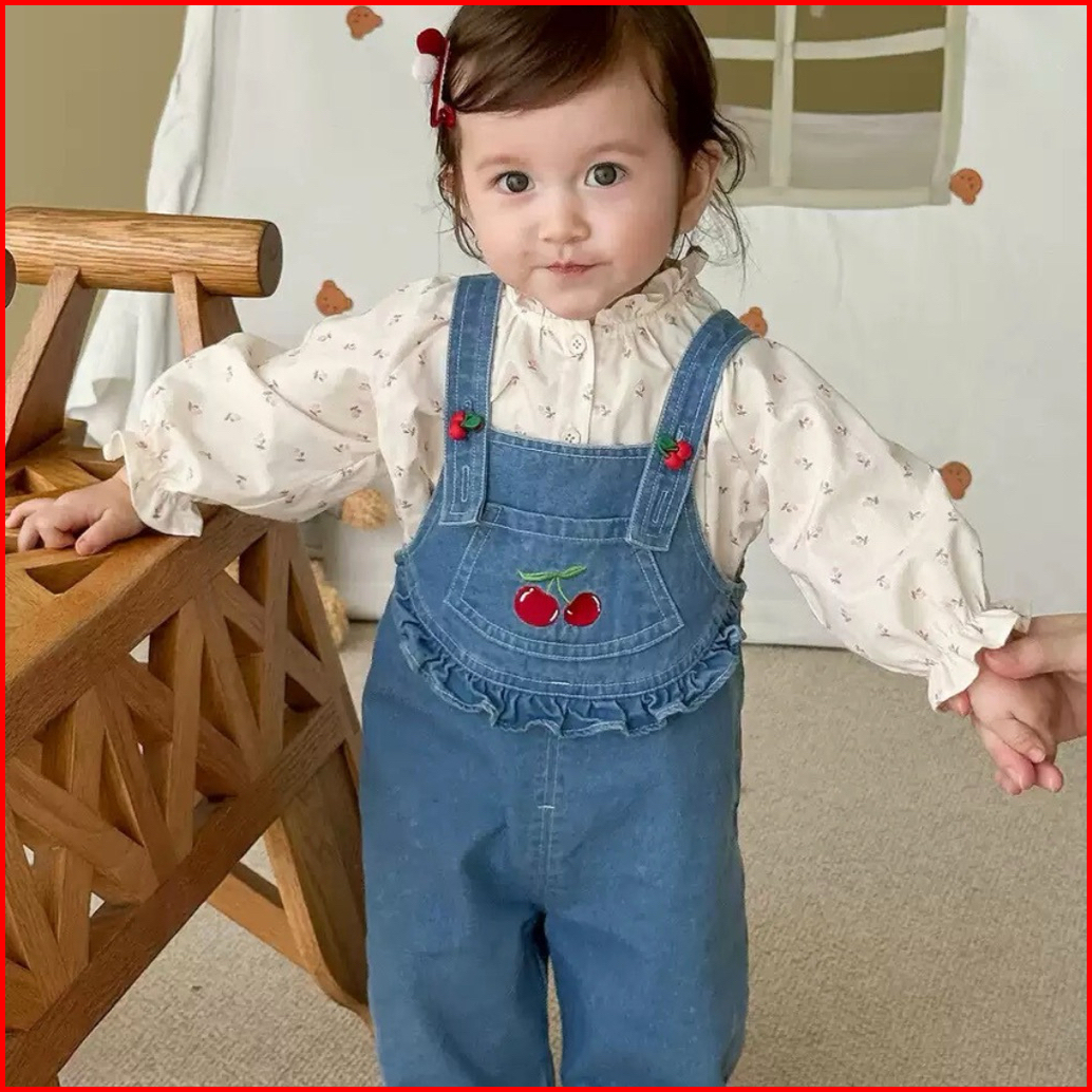 Kaola - Cherry Jeans Jumper Jeans Bayi Kemeja Lengan Panjang Balita Anak Perempuan