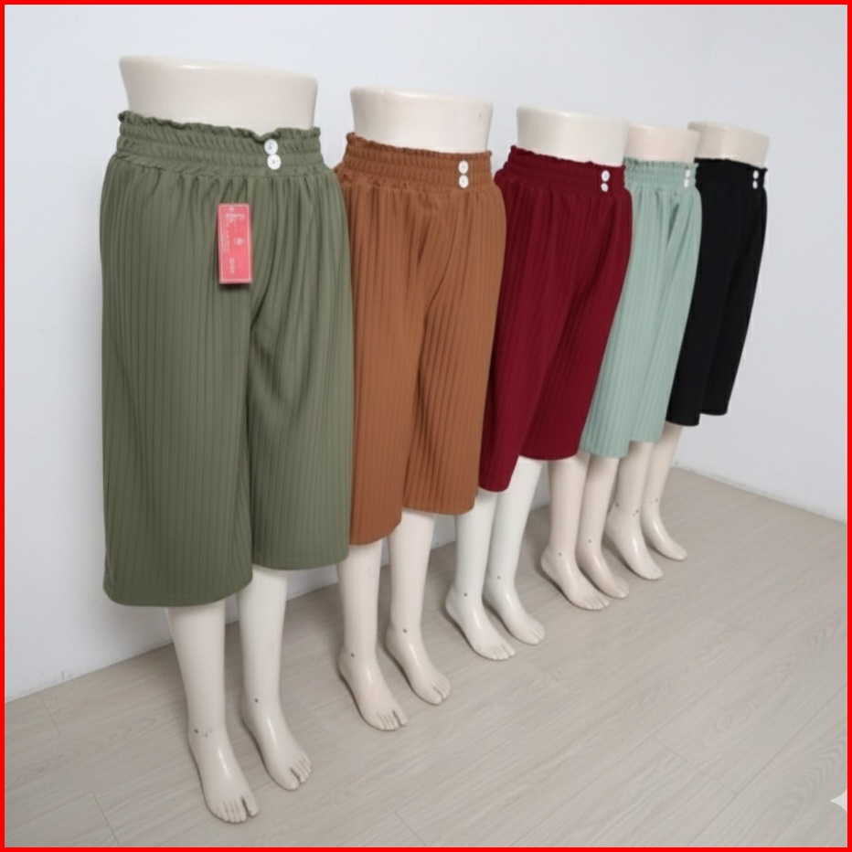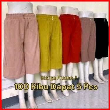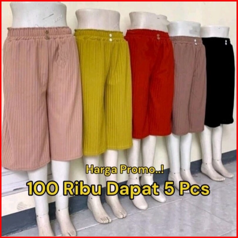 Isi 5 Pcs Celana Kulot Pendek Knit Hornet Wanita Dewasa Celana Santai Wanita Big Size Jumbo 7 8