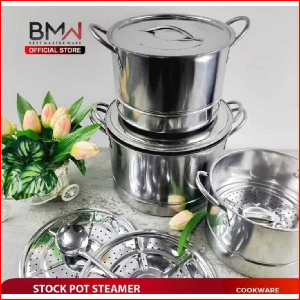 1 Set 4pcs Stock Pot Steamer Stainless Tebal Panci Stockpot Stainless Panci Dandang Steamer 4 Set Stockpot Steamer Teko