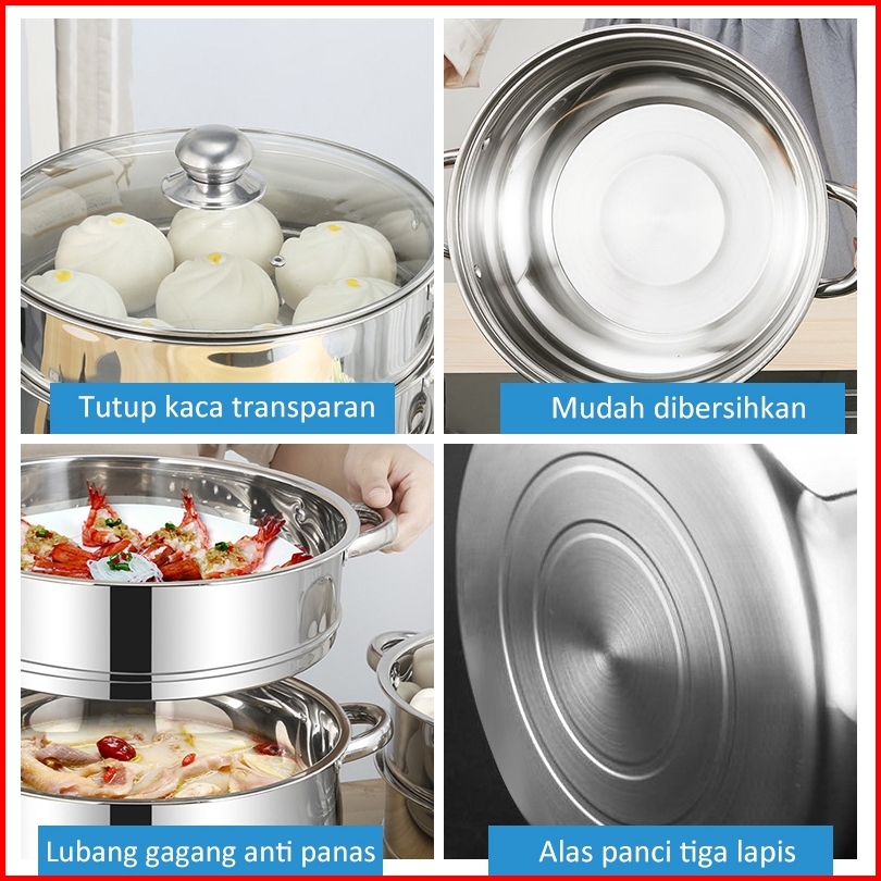 Premium Freemir Pengukus Stainless Steel 26cm 2 Layer Serbaguna Panci Kukus Tutup