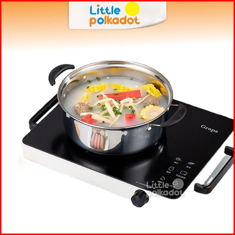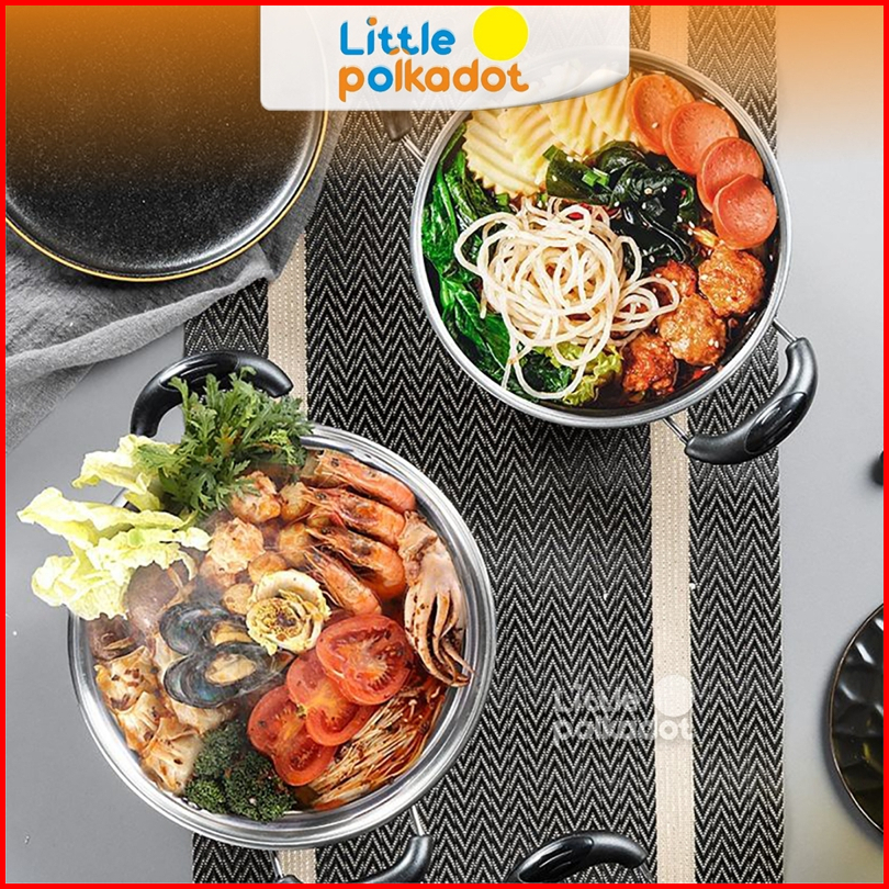 Littlepolkadot Panci Sup Stainless Steel Tutup Kaca Anti Panas Panci Set 16cm 18cm 20cm Sup Susu Stainless Masak Mie Tom