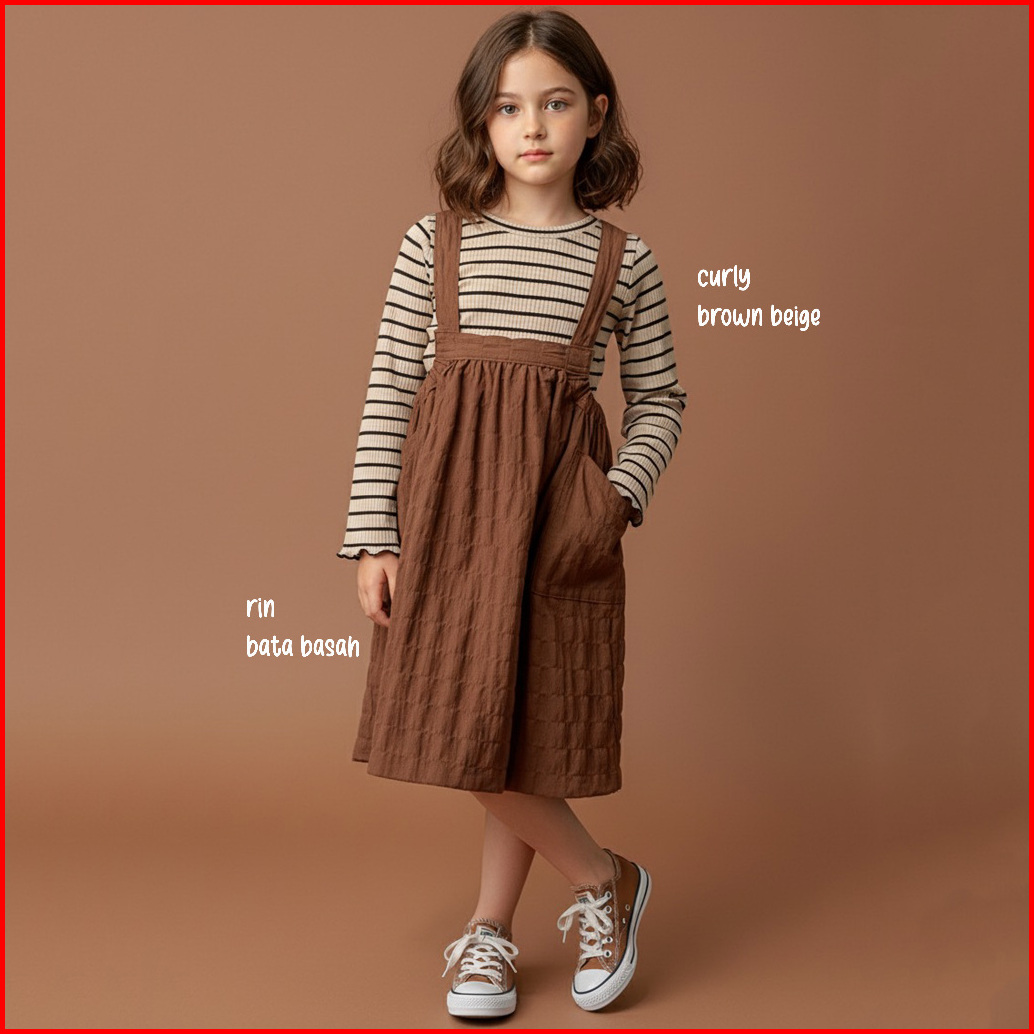Rin - Rok Overall Anak Perempuan Panjang Linen Katun Earth Tone Sand Beige Terakota Terracota