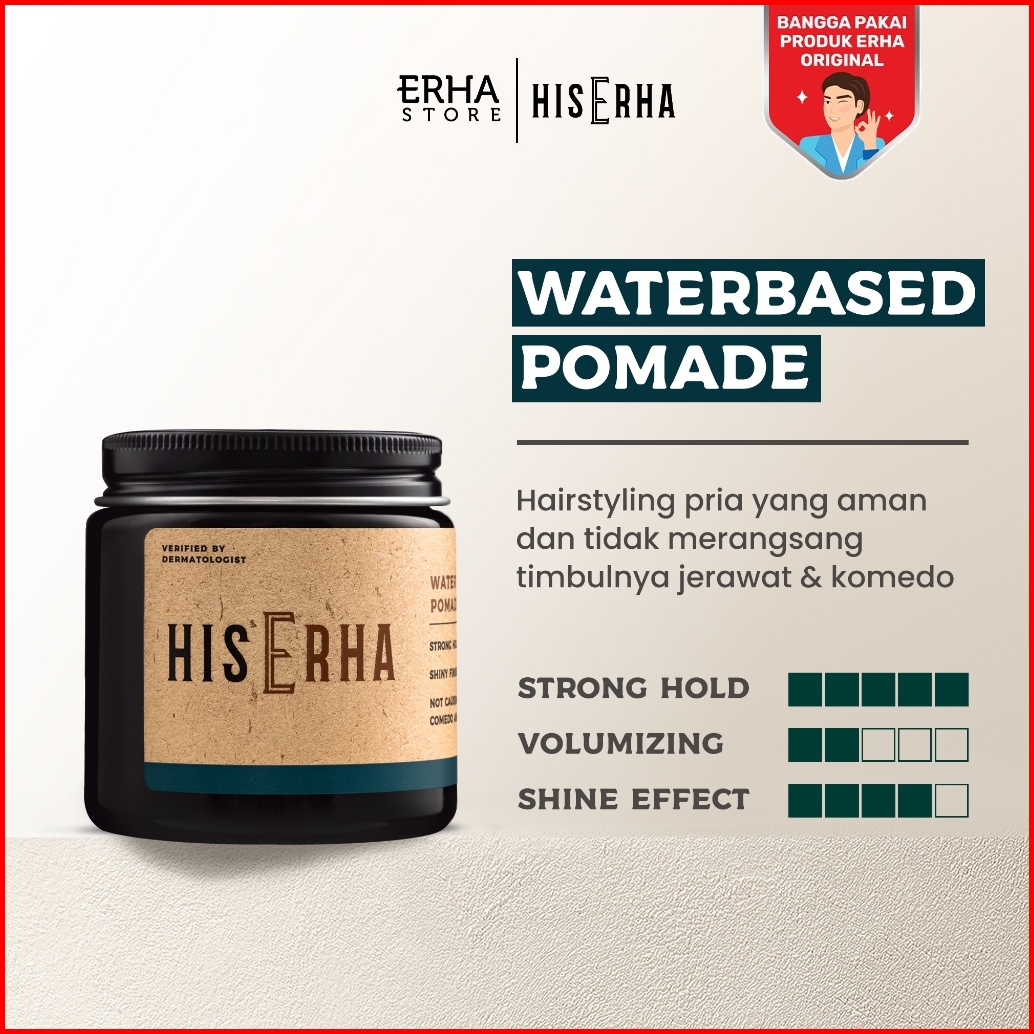 His Erha Waterbased Pomade 120g - Hair Styling Pria Untuk Hasil Sleek Strong Hold Mudah Dicuci Aman Tidak Menyebabkan Ti