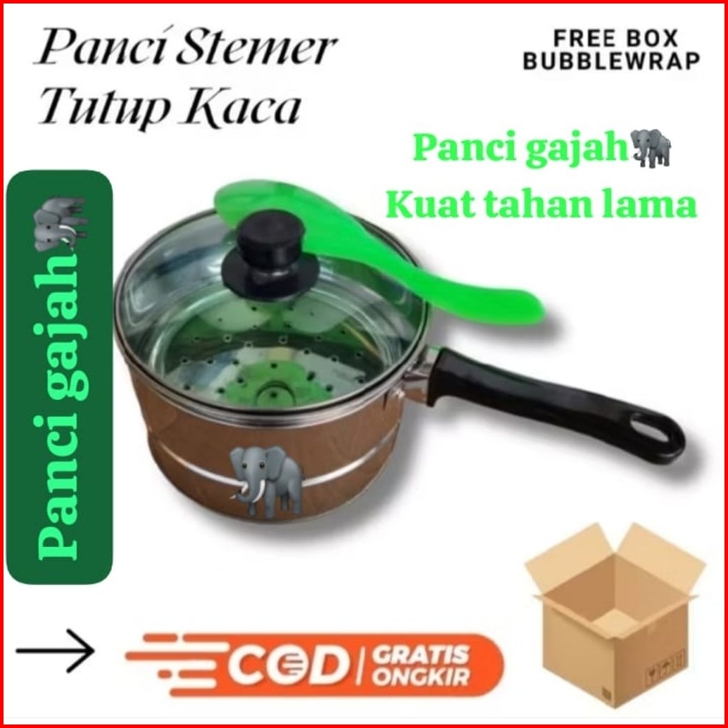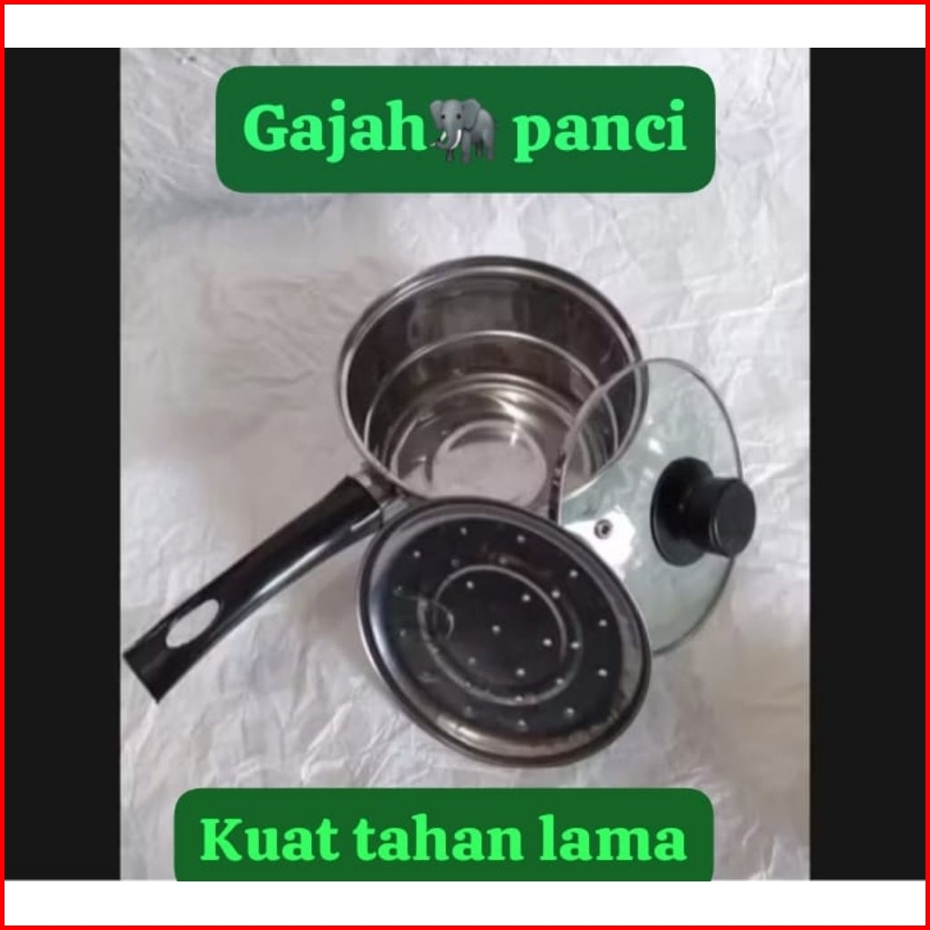 Panci Kukus Panci Steamer Stenlis Tutup Kaca Panci Susu 2 Fungsi Ukuran 16cm