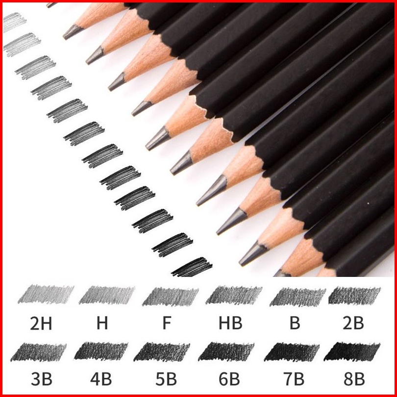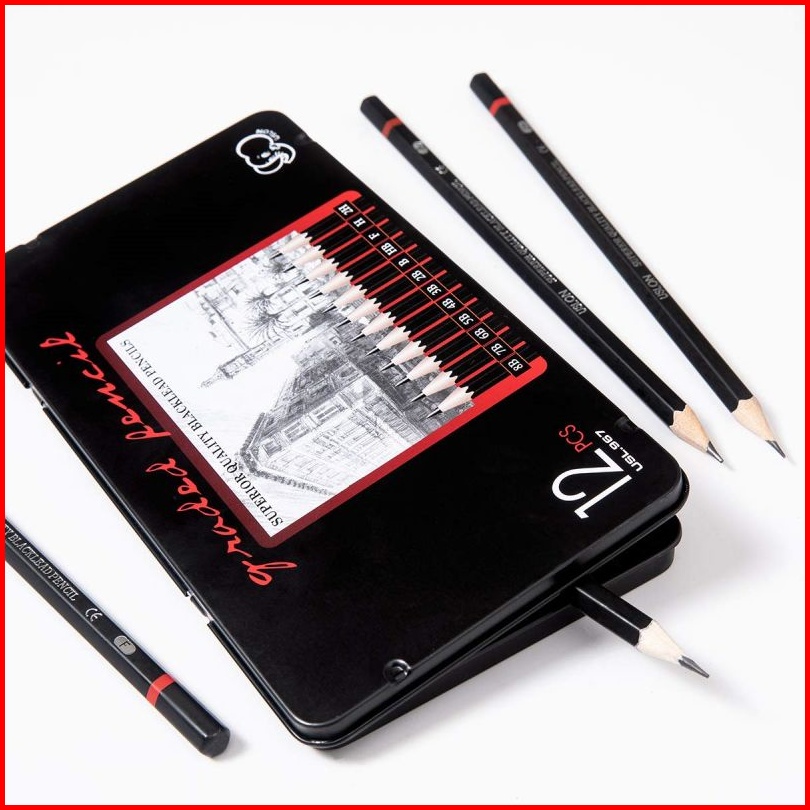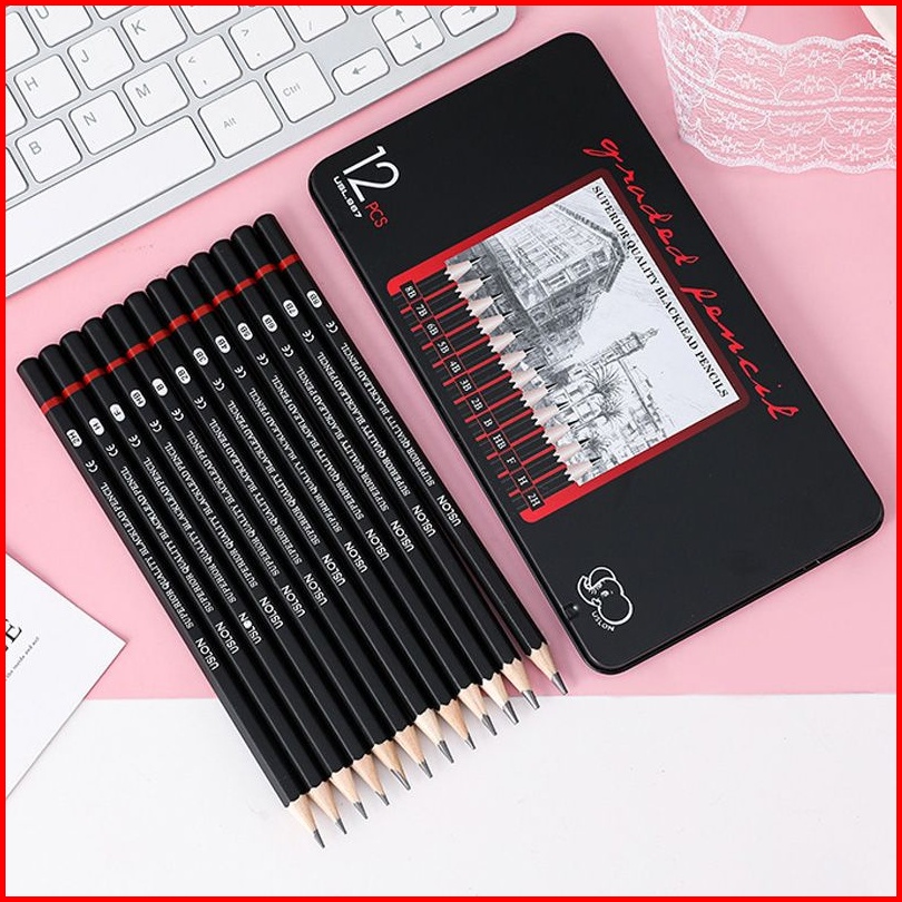 12pcs Pensil Gambar Sketsa Set Sketching Pencil Set Sketch Drawing Pencil Set Paiting Pencil Kit 2h-8b