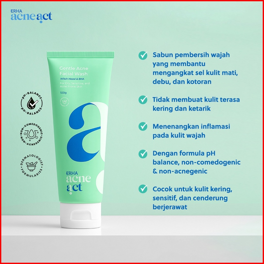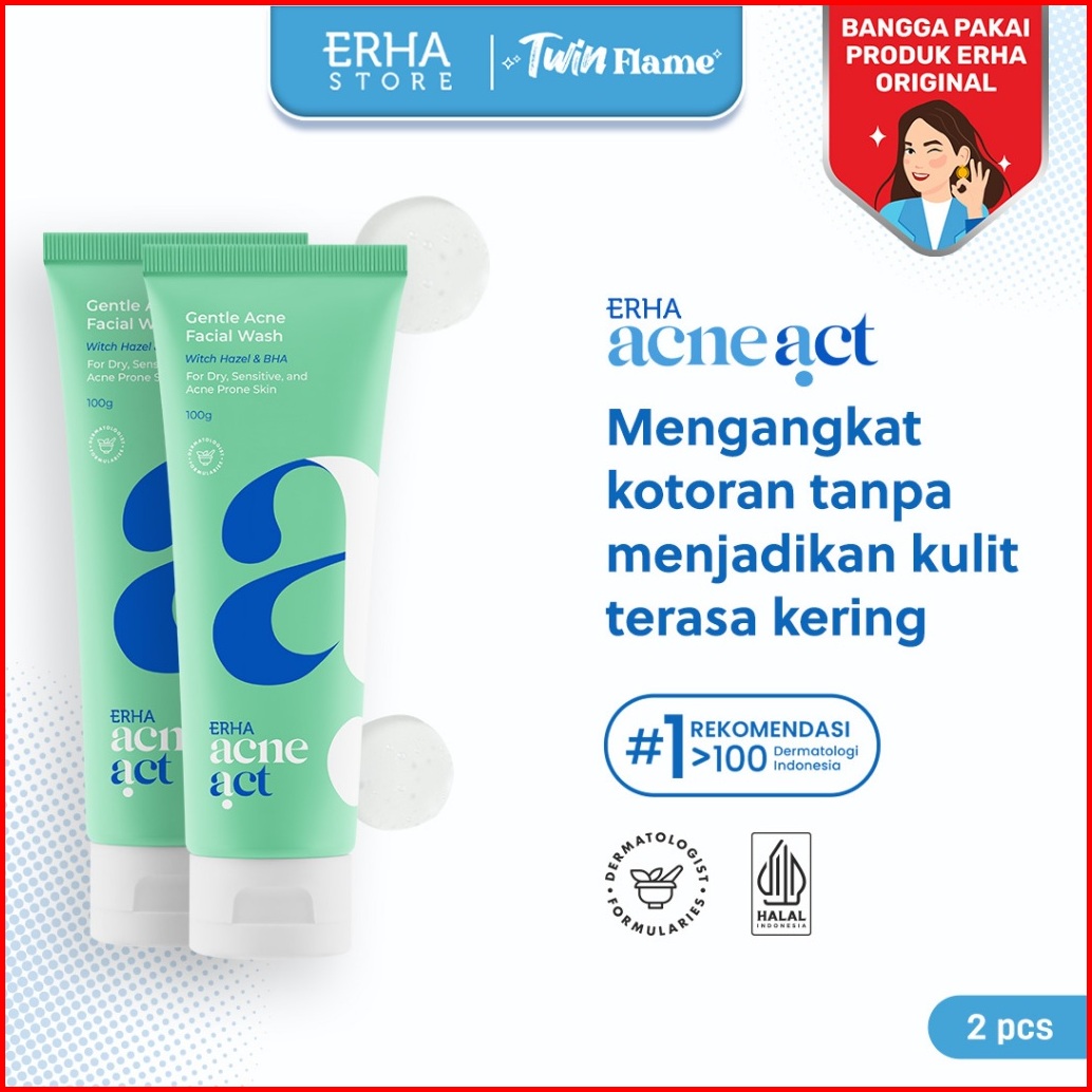 Erha Twin Flame Acneact Low Ph Gentle Facial Wash Witch Hazel Bha 100g - Sabun Wajah Anti Ketarik