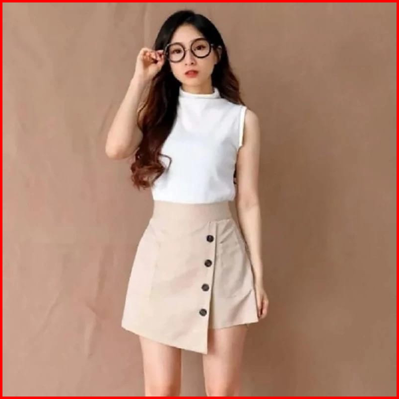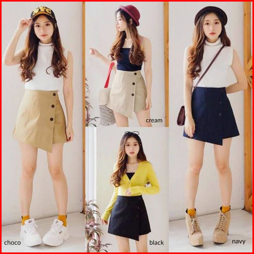 Skort Celana Pendek Wanita Hotpants Model Rok Celana Kancing Depan Bahan Katun Drill