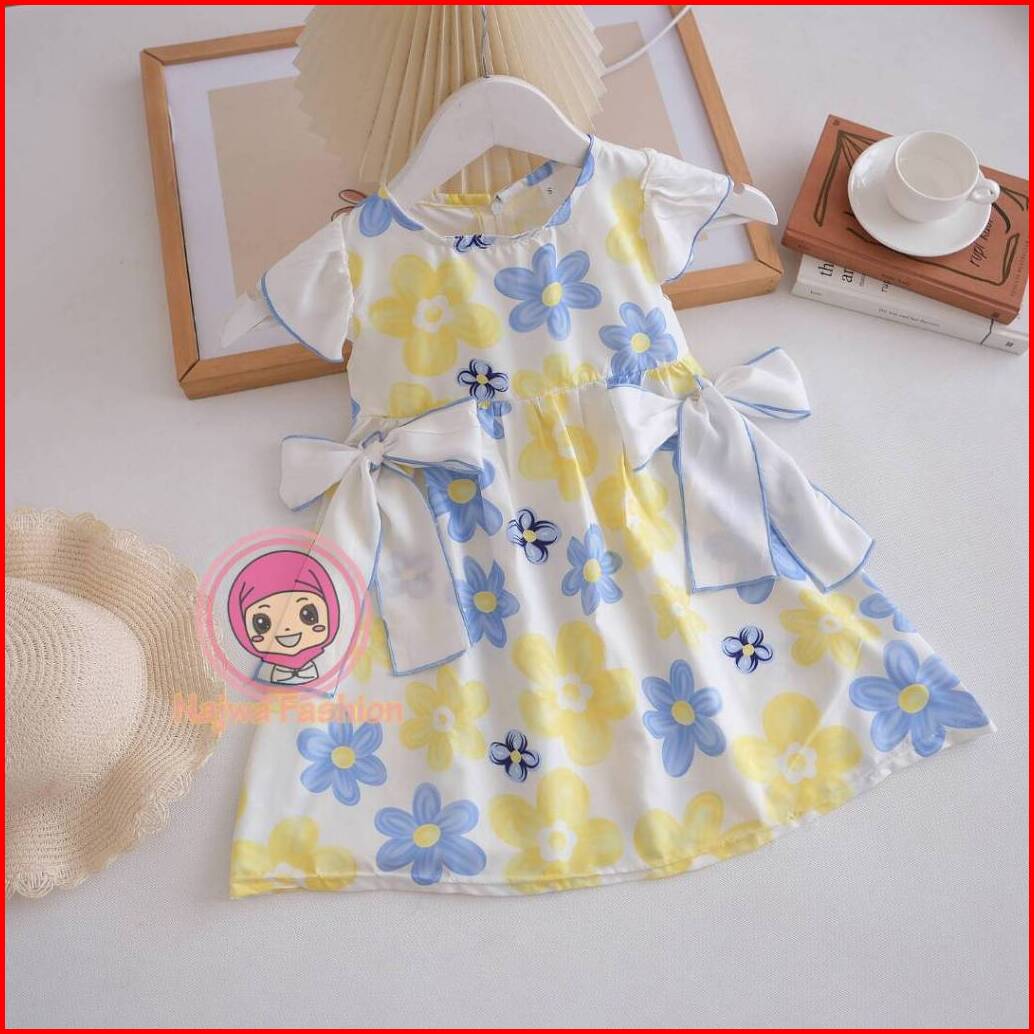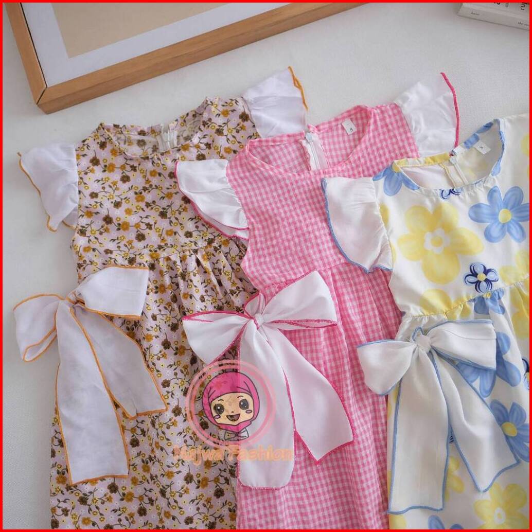 Najwa - Dress Anak Flowcis Ribbon Korean Style Fashion Dress Anak Perempuan Motif Flower Terlaris