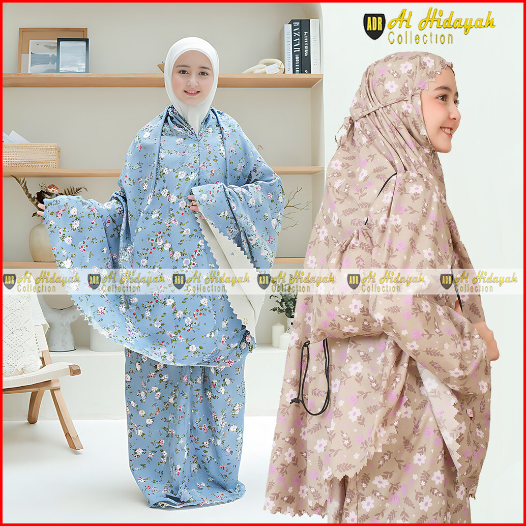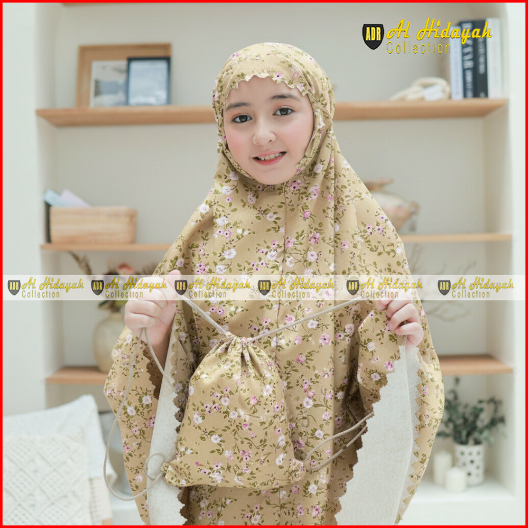 Alhidayah Collection Mukena Anak 2in1 Katun Motif Print Mewah Resleting Dagu Traveling Mini Pouch Tas Ransel