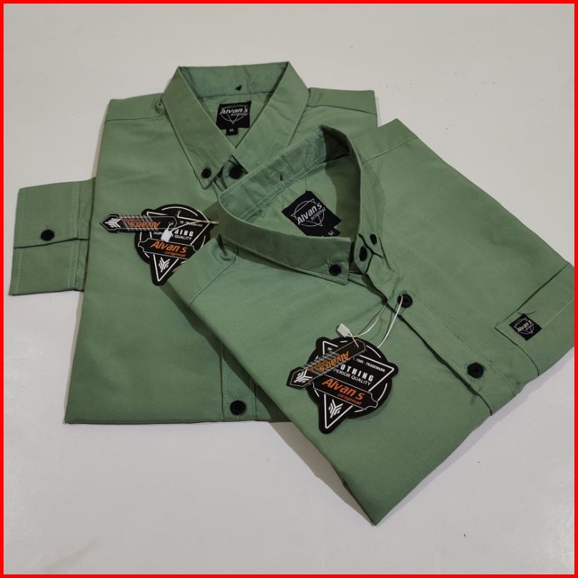 Kemeja Hijau Sage Panjang Pendek Pria