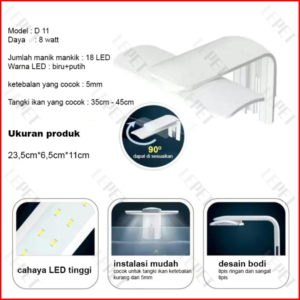 Lepet Lampu Aquarium Led Akuarium D13 D11 D09