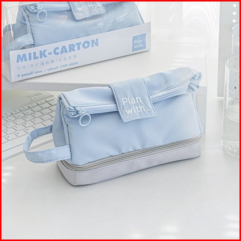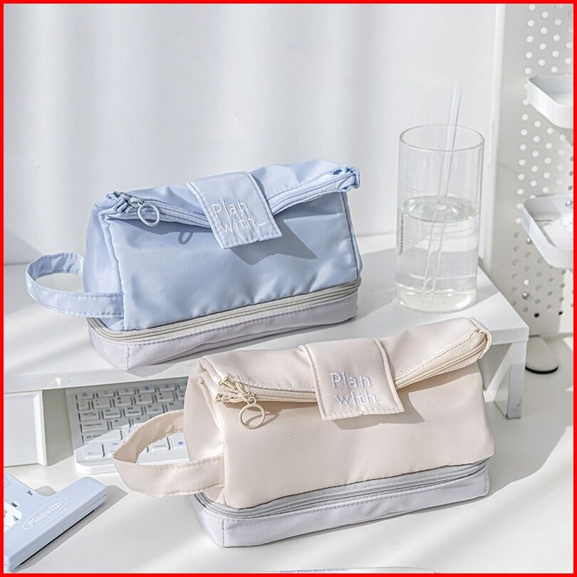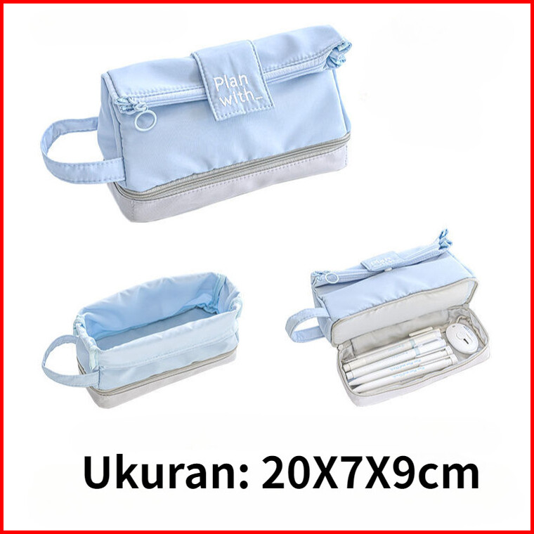 Tas Pensil Besar Double Layer Tas Penyimpanan Siswa Alat Tulis Tempat Pensil Ritsleting Kapasitas Besar