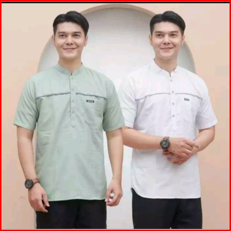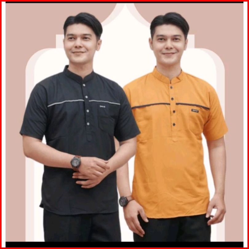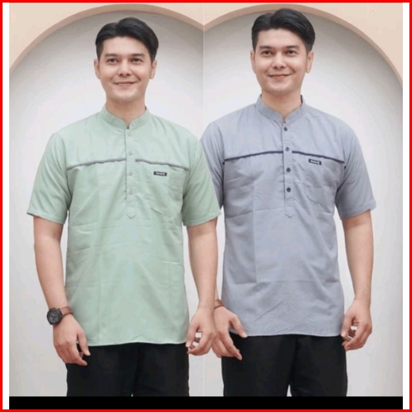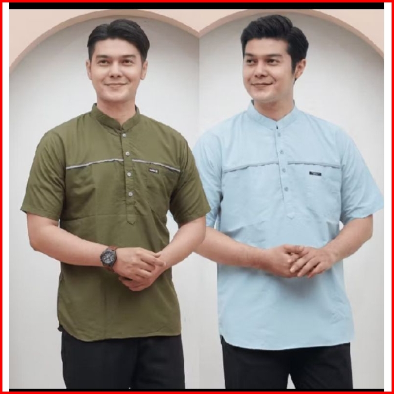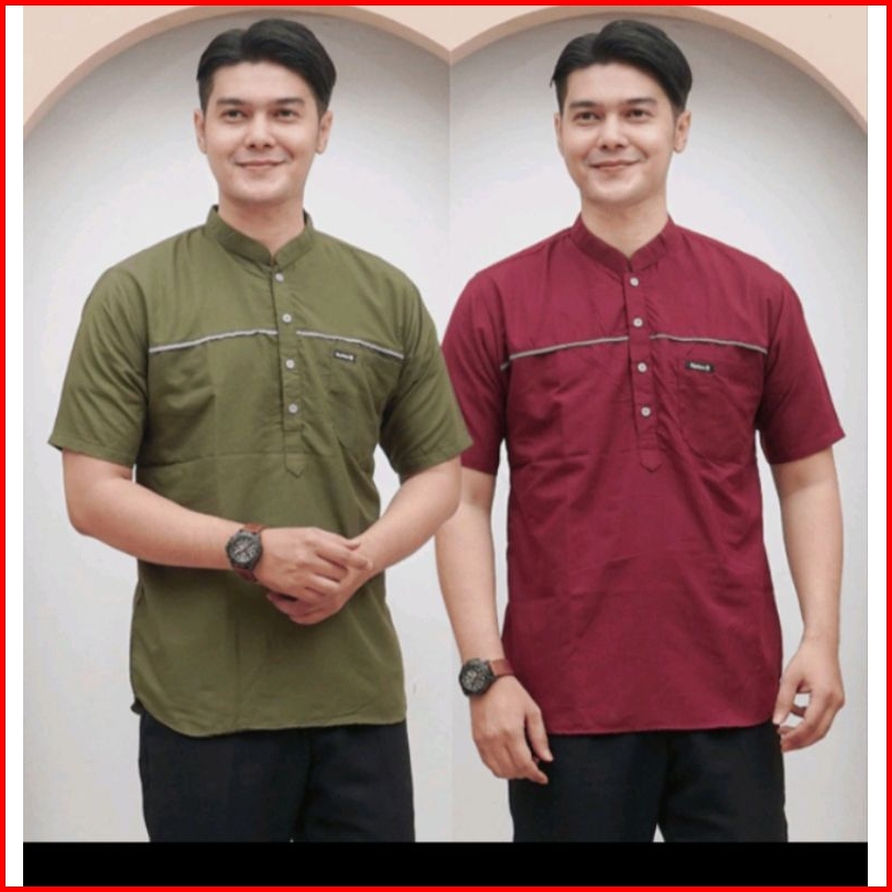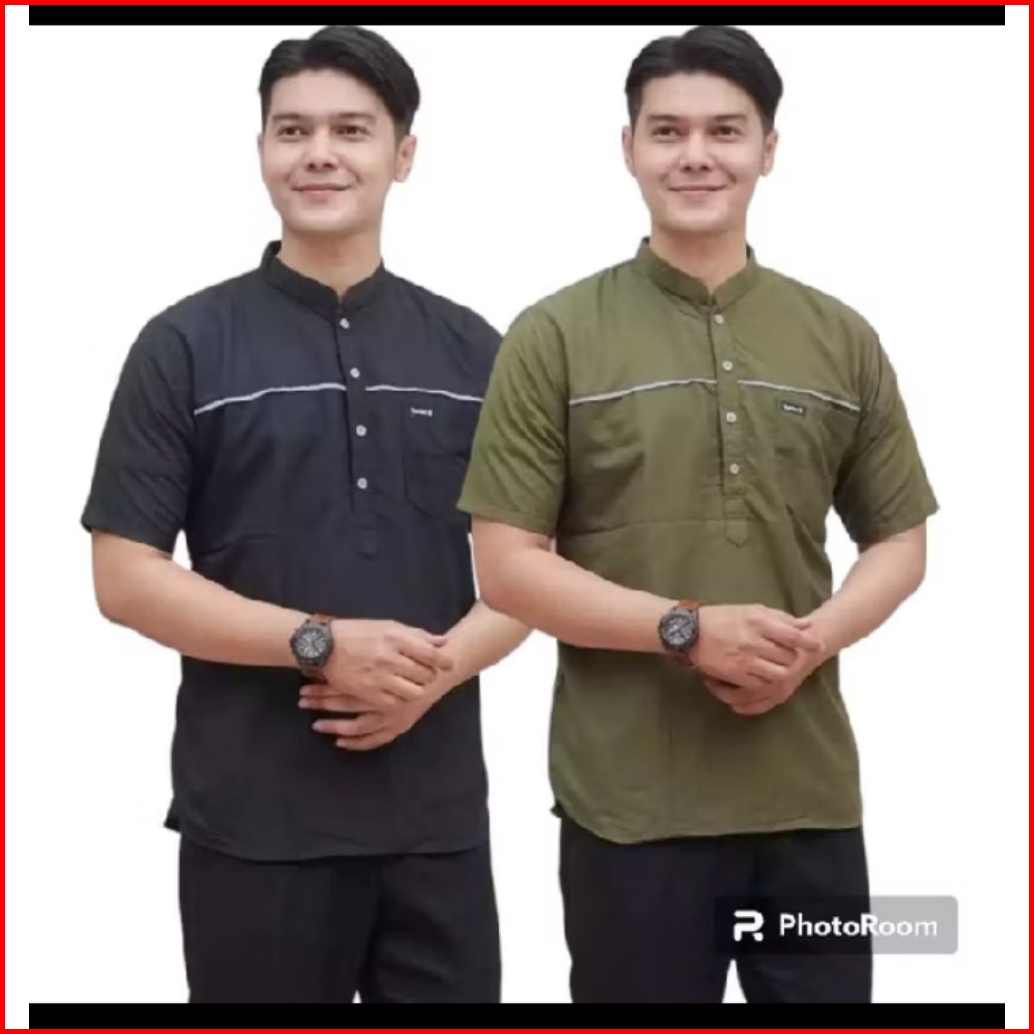 Baju Koko Kurta Garis Dada Lengan Pendek Casual Formal Boyi Top