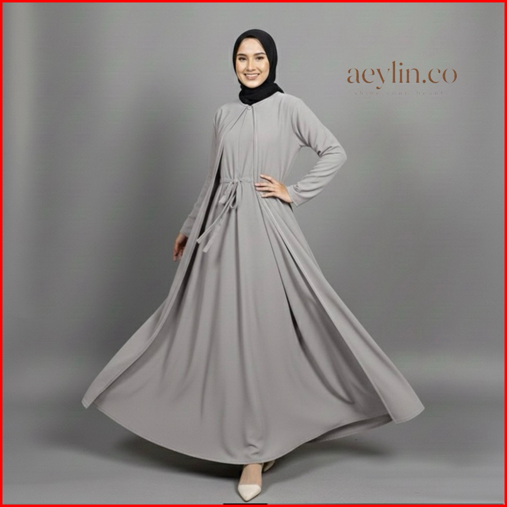 Aeylin- Gamis Abaya Wanita Kekinian Dengan Tali Pinggang Dan Kancing Di Lengan Terlaris No 1