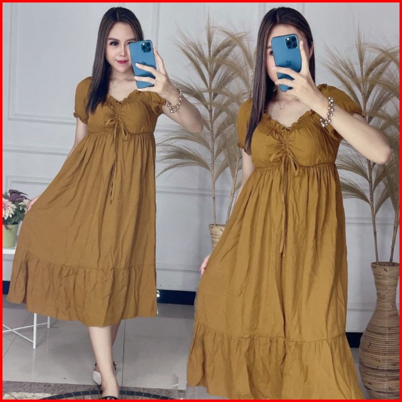 Daster Serut Dada Busui Terbaru Dress Elsa Bumil Bahan Rayon Ld 120 Viral Midi Santai Terlaris