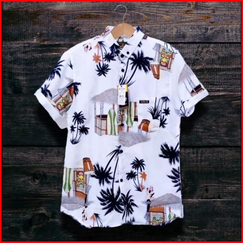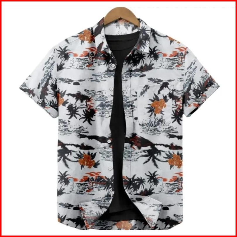 Kemeja Pria Motif Pantai Lengan Pendek Pria Hem Full Printing Terbaru 2025 Gubuk Putih