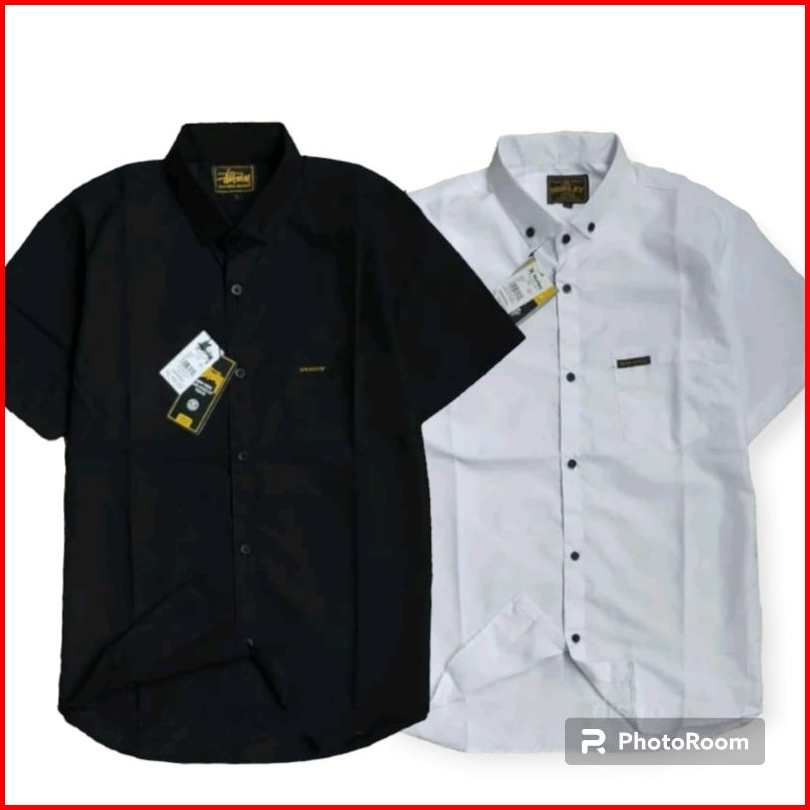 Paket 2pcs 50ribu Kemeja Polos Pria Lengan Pendek Baju Kantor Hem Cowok Atasan Casual