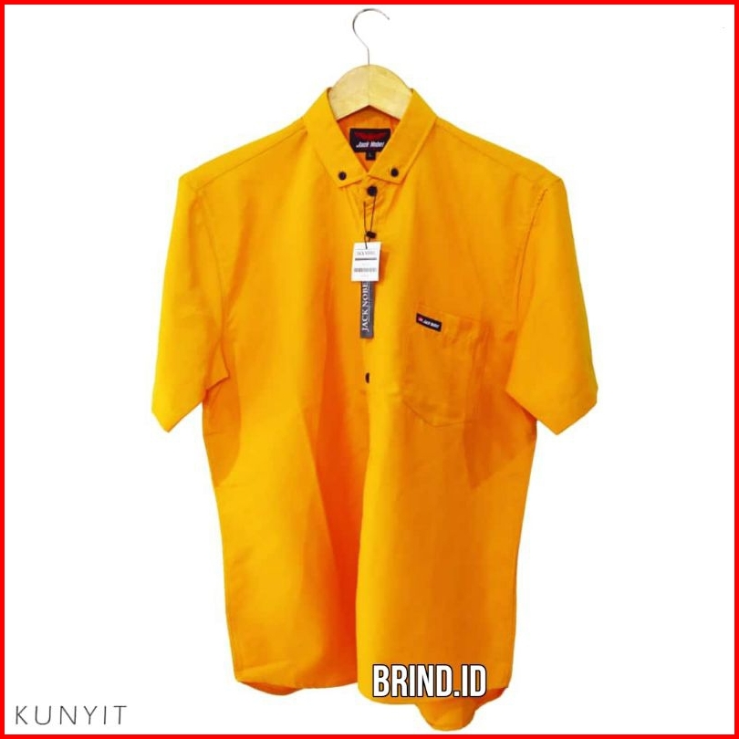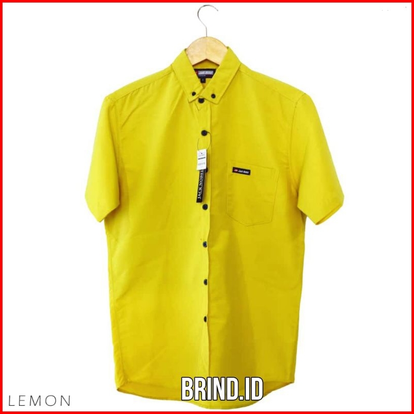 Kemeja Pendek Pria Kuning Lemon Katun Premium