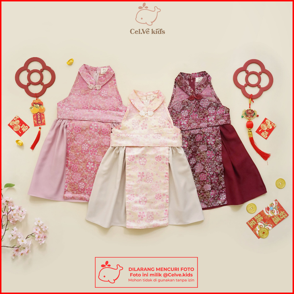 Celvekids - Dress Imlek Yong Xin Baju Rok Anak Perempuan Korean Style Semiwool Ceongsam Usia 1-8th