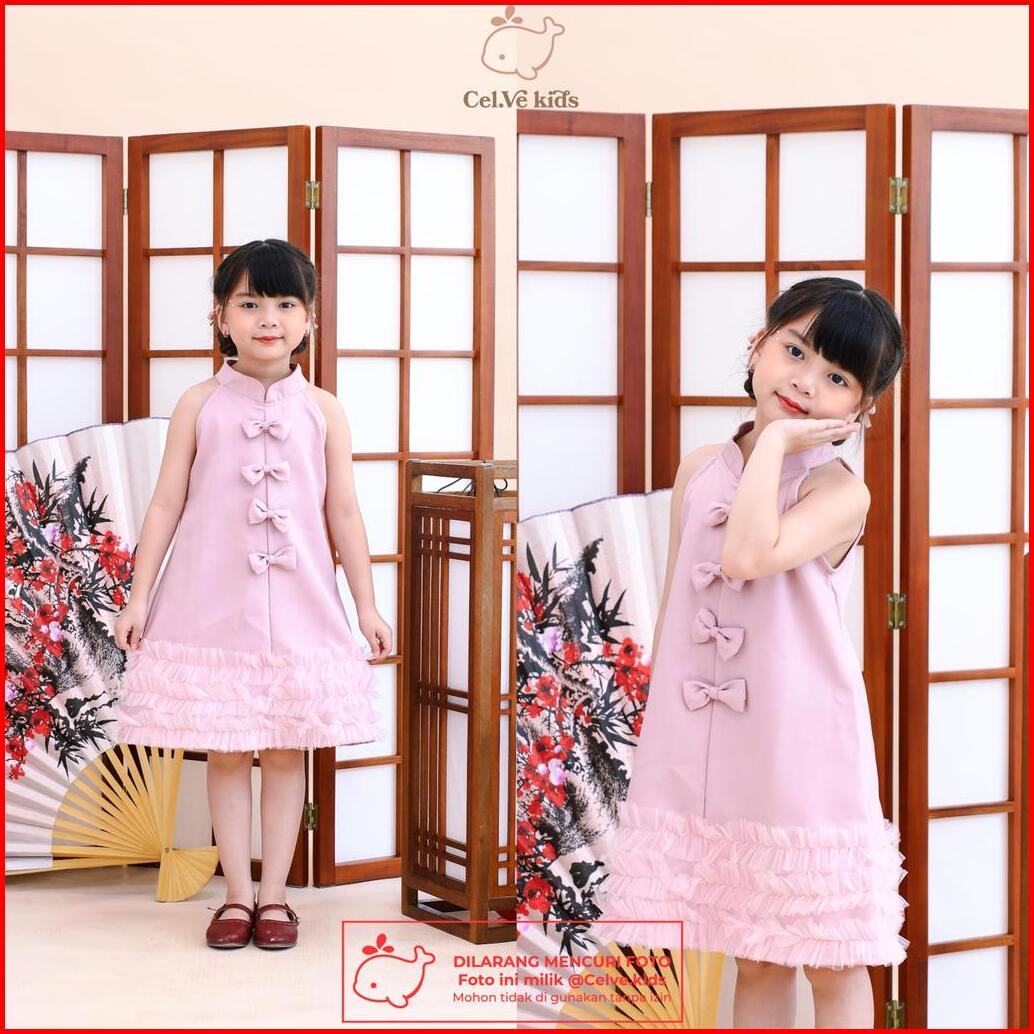 Celvekids - Dress Imlek Mei Jia Baju Rok Anak Perempuan Korean Style Semiwool Tile Usia 1-8th