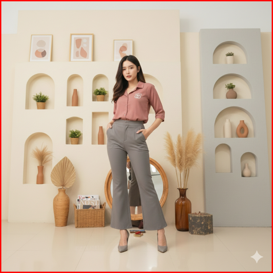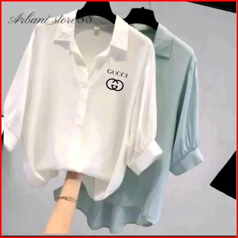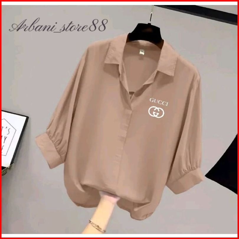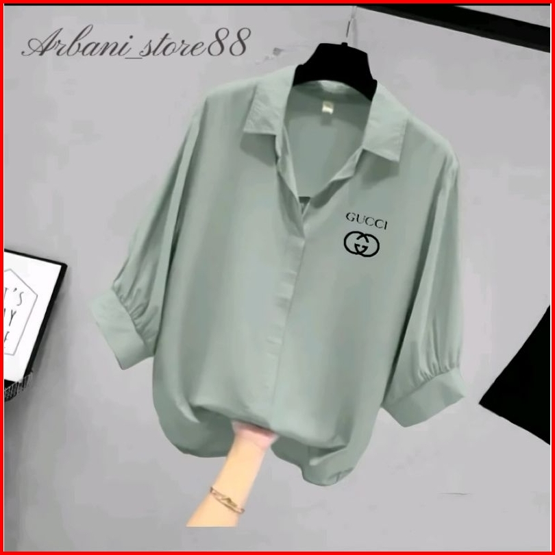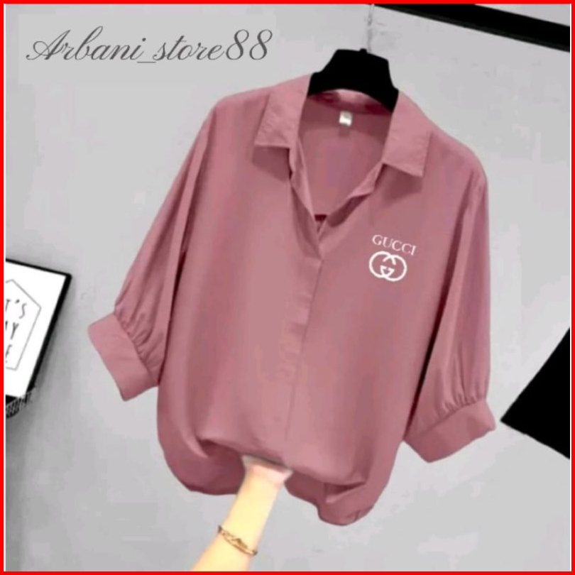 Blouse Kemeja Atasan Wanita Korean Style Kerah V Lengan Ruffle Balon 3 4 Crinkle Airflow