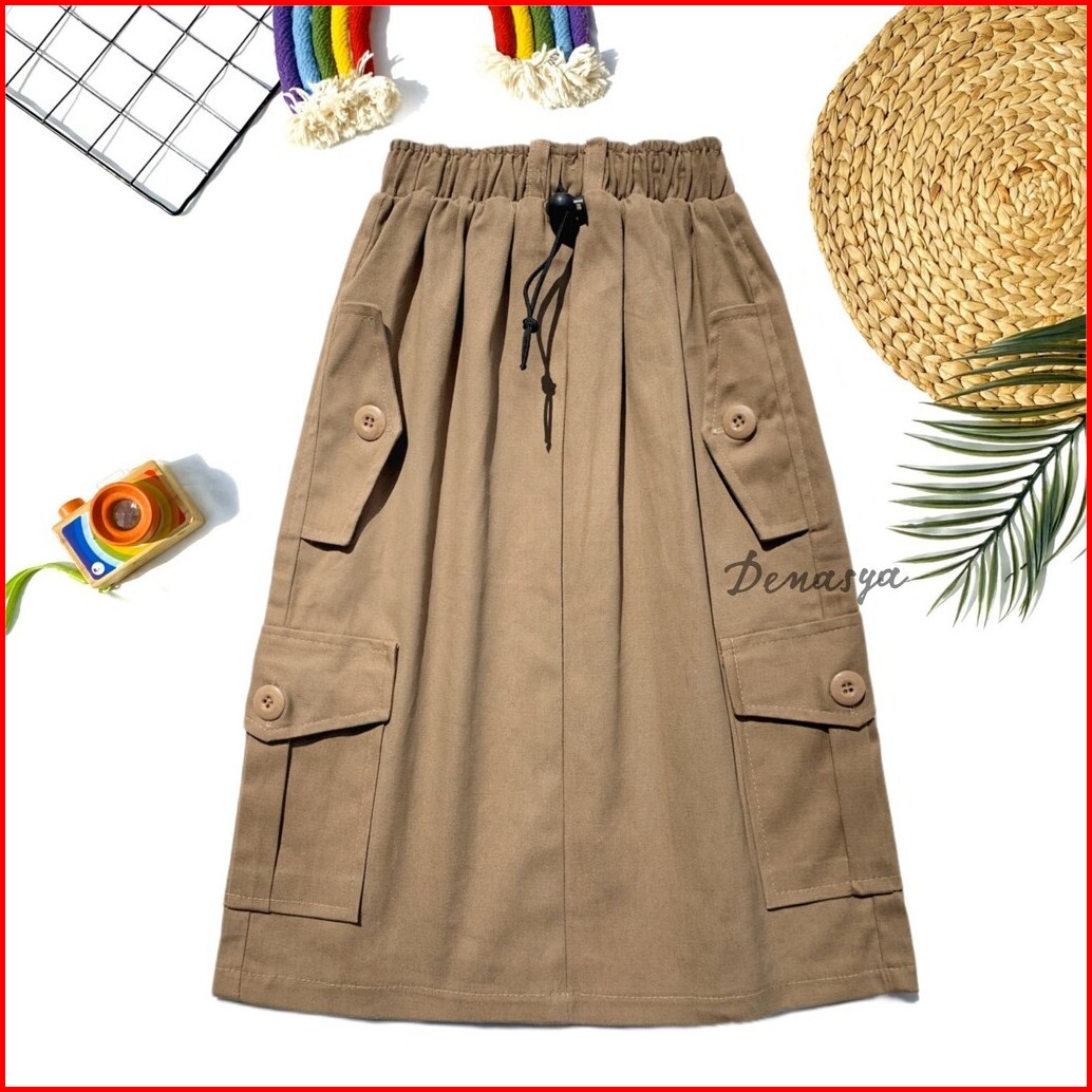 Rok Cargo Anak Perempuan Kekinian Rok Cargo Katun Anak 1-12 Tahun Rok Panjang Anak Perempuan Import