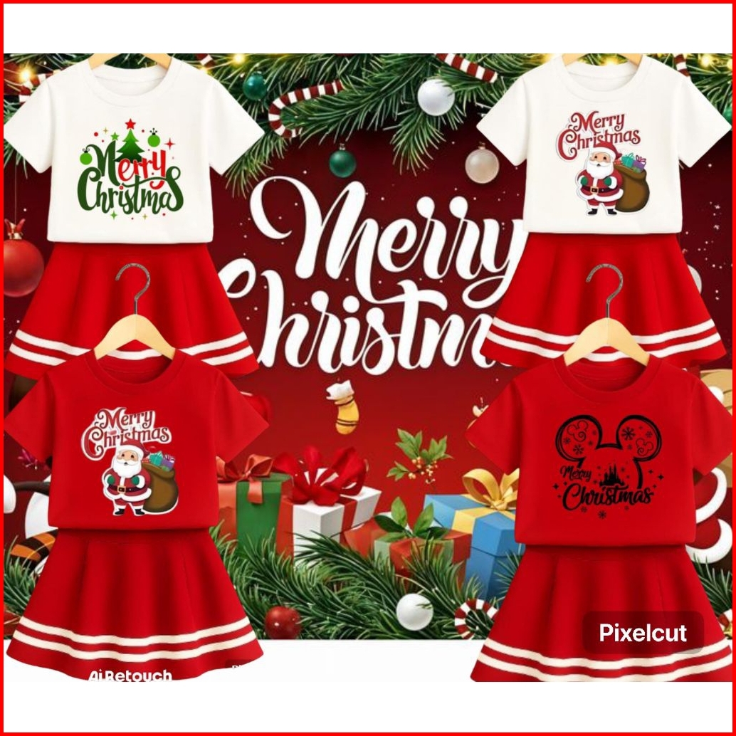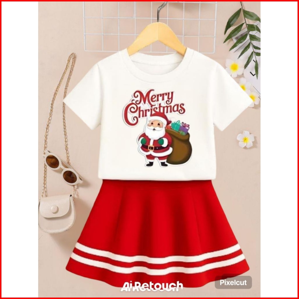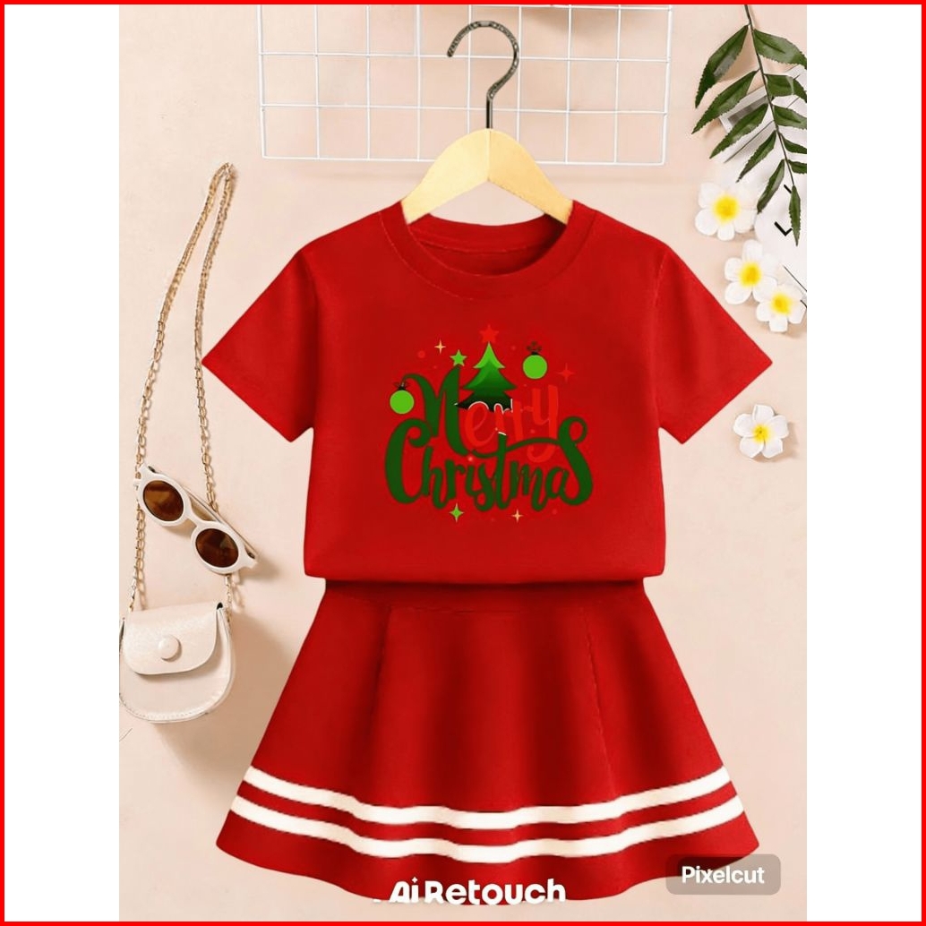 Setelan Rok List Spesial Natal Setelan Baju Anak Perempuan Tema Natalan Lucu Untuk Usia 1-10 Tahun