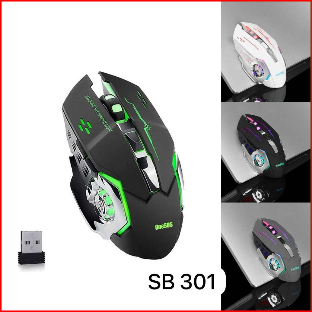 Mouse Gaming Wireless Silent Led Rgb Tombol Makro Light Weight Mouse Laptop Komputer Os Recevier Usb Donggel Sb 301