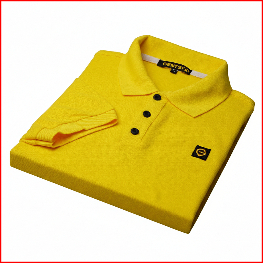 Gentsy Kaos Polo Shirt Kerah Lengan Pendek Bahan Katun Pique Premium Warna Kuning Untuk Pria Dewasa