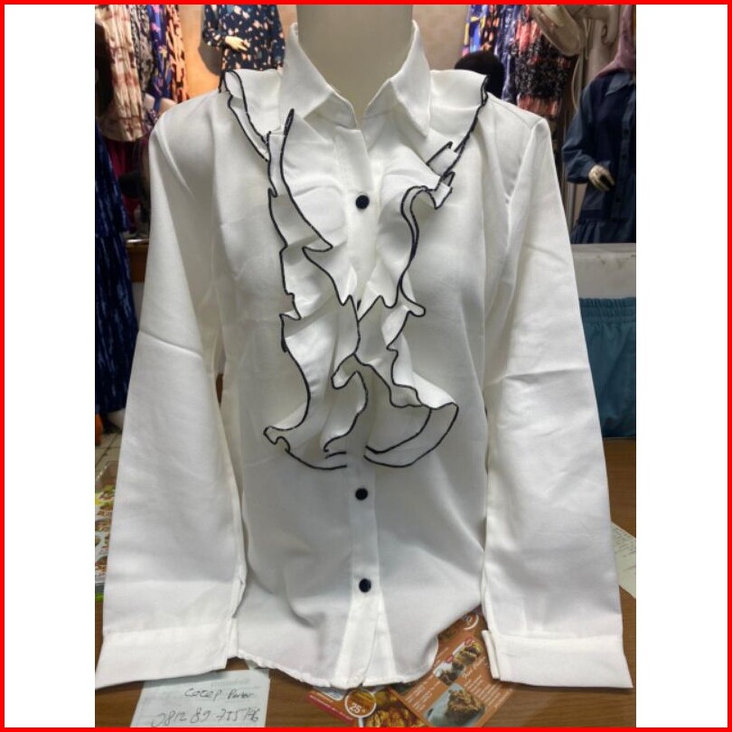 Kemeja Wanita Rumbai Neci Atasan Wanita Lengan Panjang Kemeja Putih Rumbai Wanita Atasan Wanita Leng
