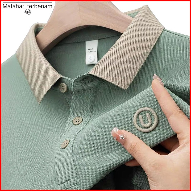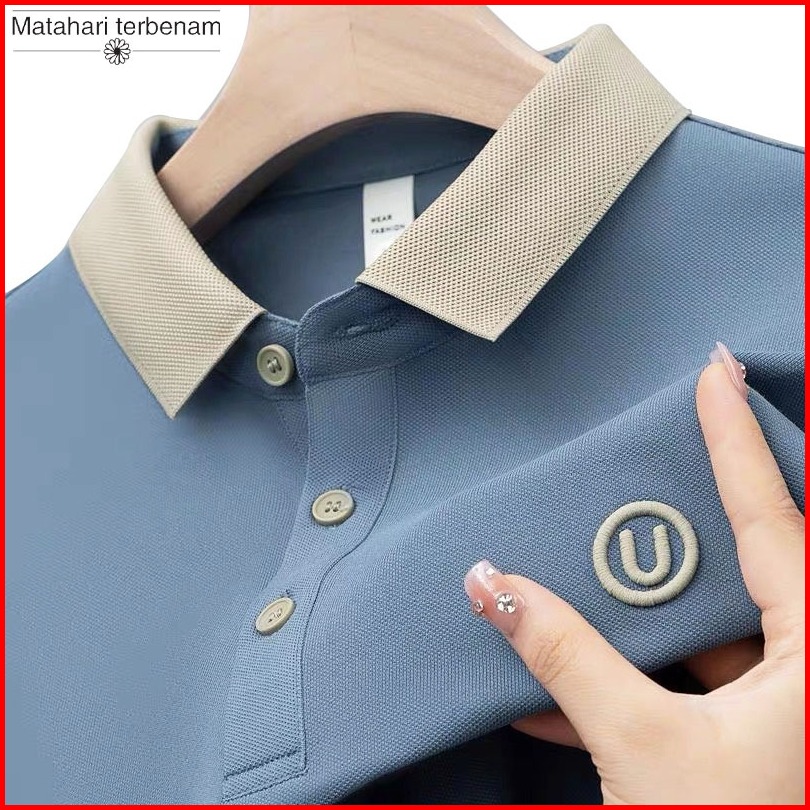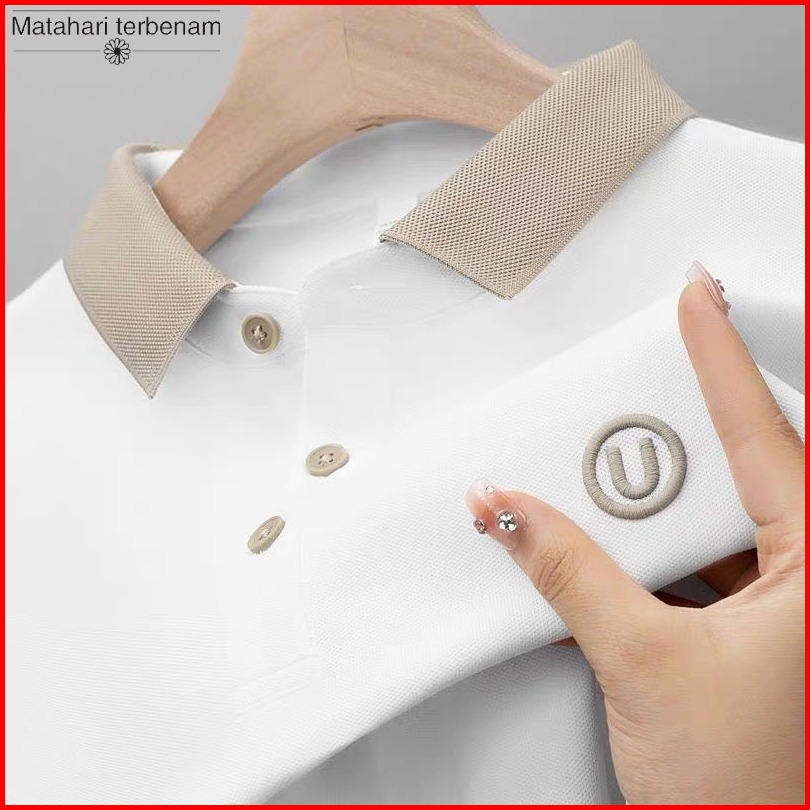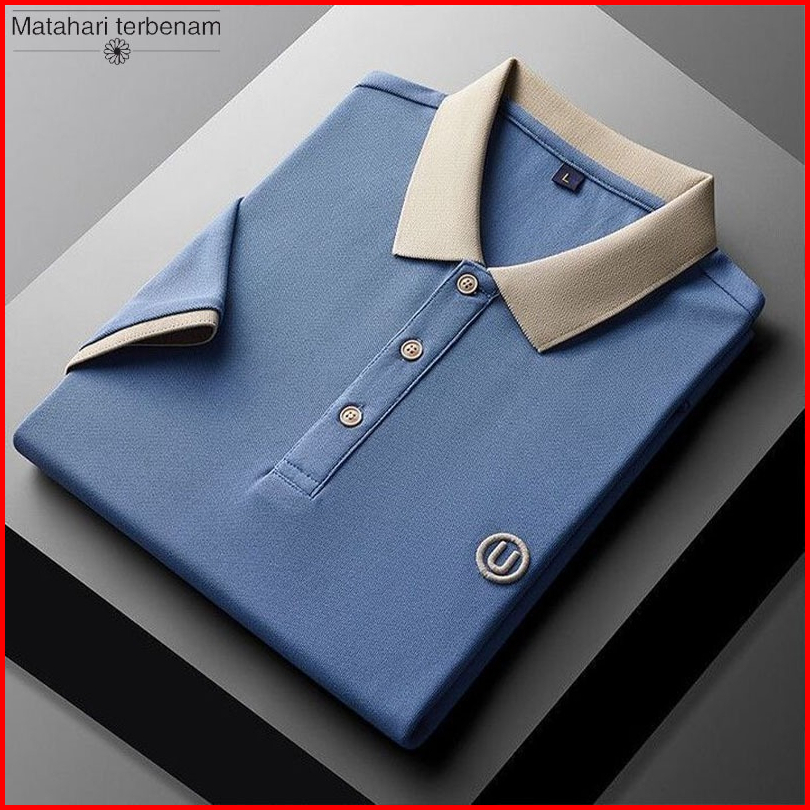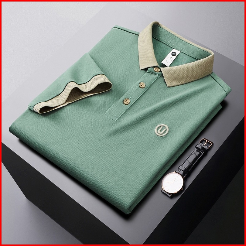 Hot Salet-shirt Polo Padi Pria Kemeja Pria Kerah Berdiri Tekstur Mewah Luxurious Polo Shirt