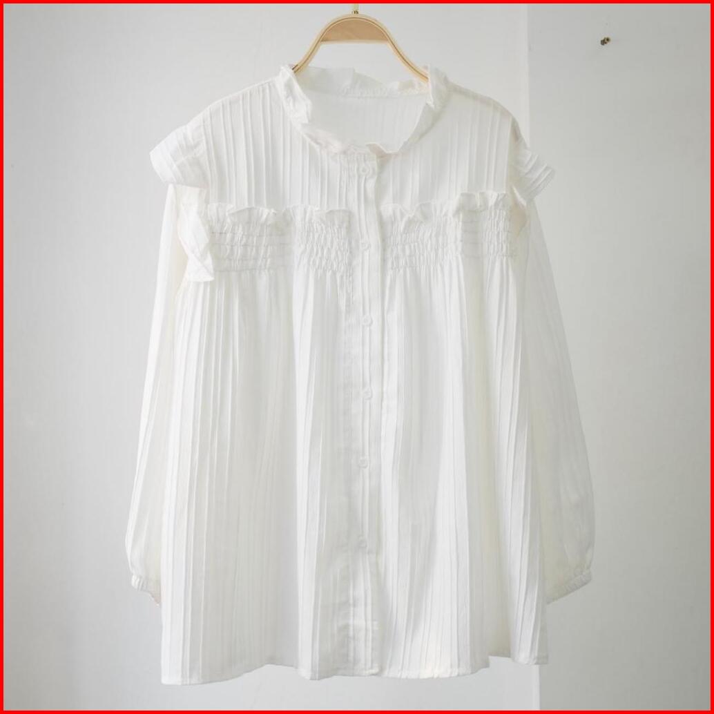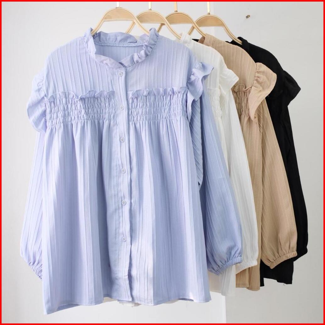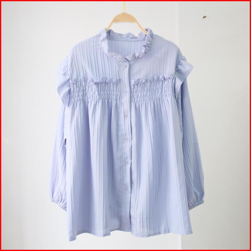 Blouse Kemeja Ruffle Polos Wanita Atasan Wanita Bahan Lavanda Full Kancing