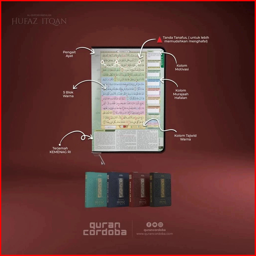 Al-quran Hafalan Hufaz Itqan A6 Jaket Terjemah Tajwid 5 Blok Warna Rasm Utsmani Quran Hafalan Mudah Al-hufaz Itqon - Cor