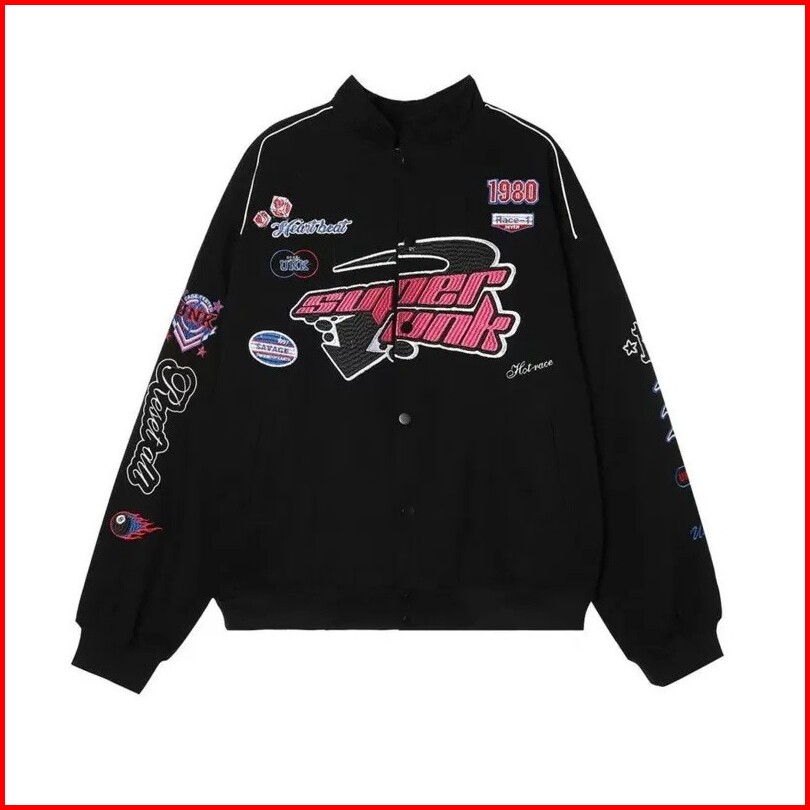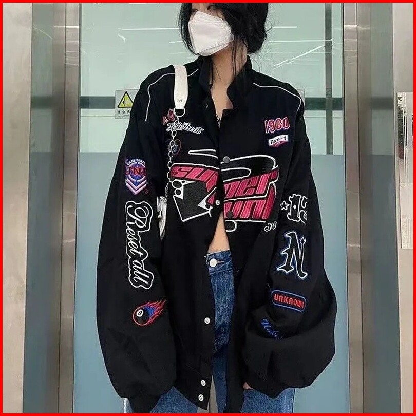Vallina - Super Ink Race Jacket Baseball Oversized Outerwear Remaja Wanita Ootd Korean Style